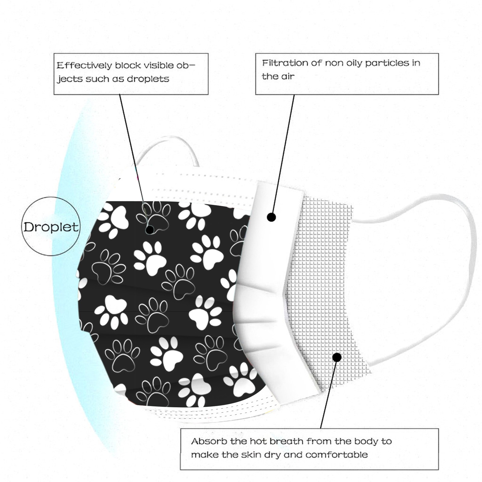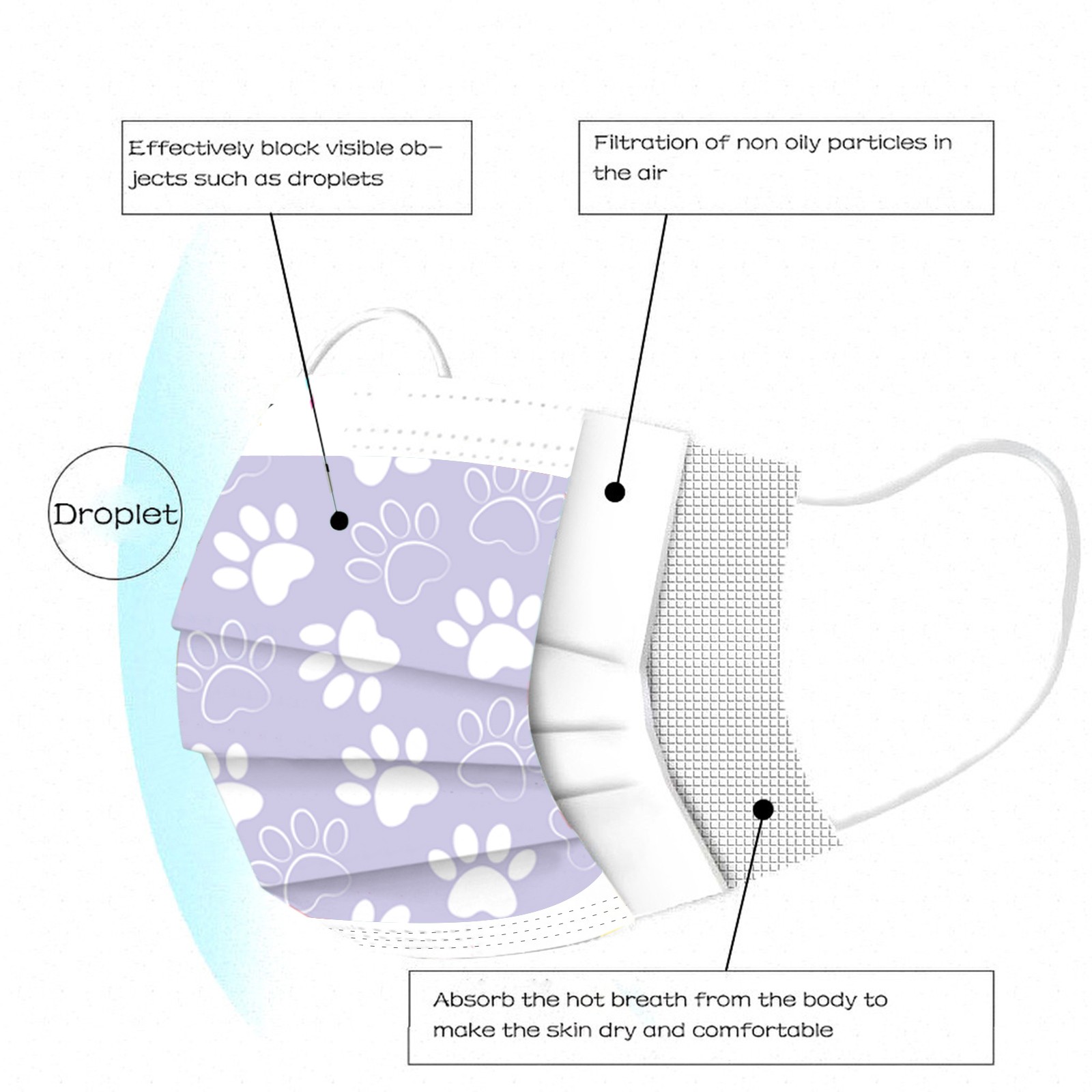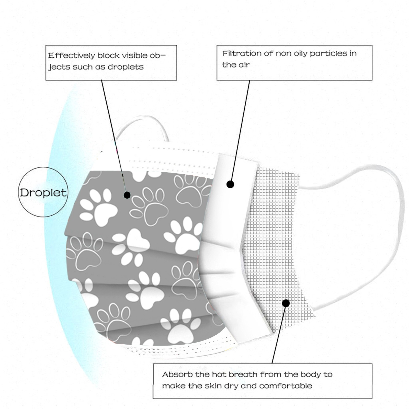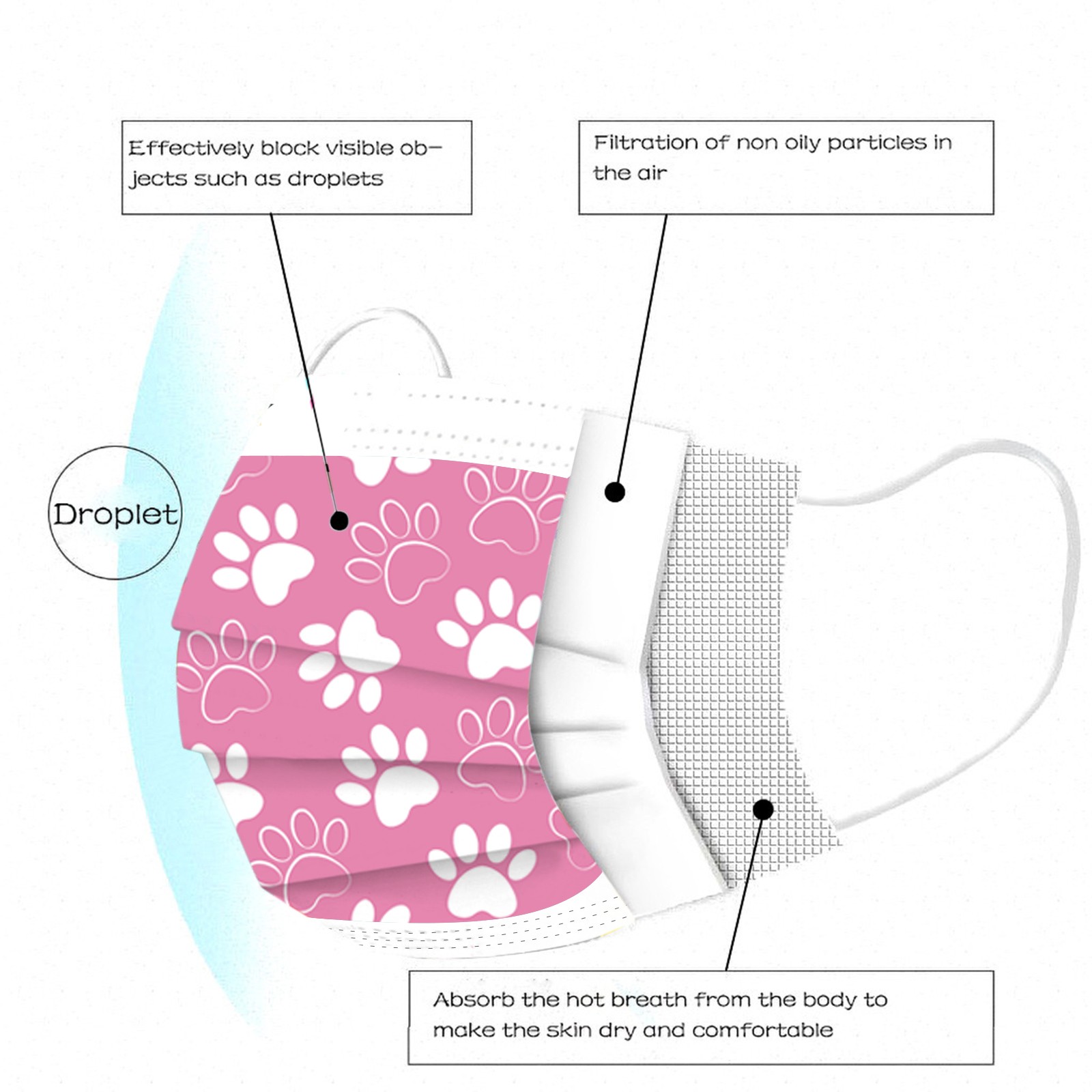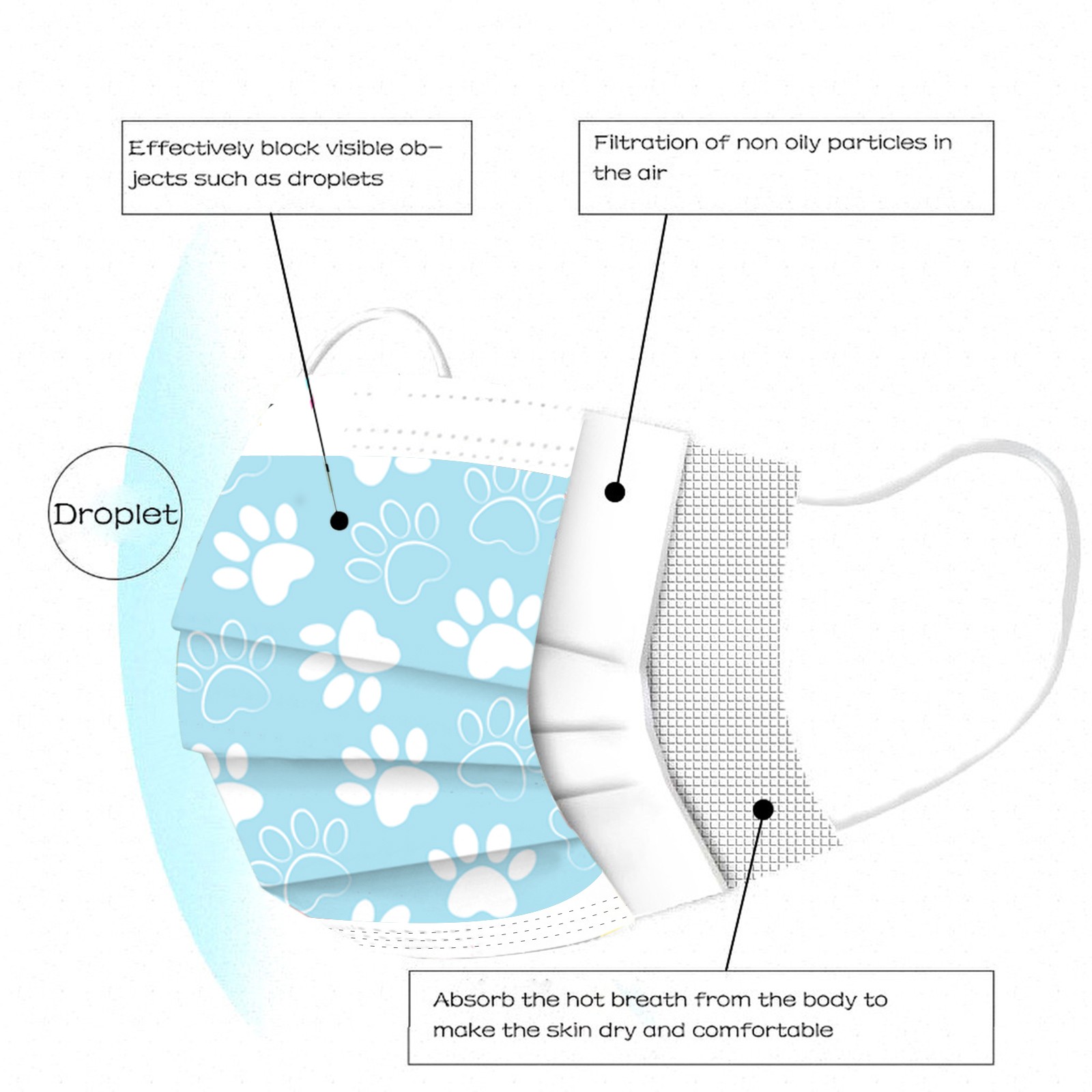 30 шт. взрослых милый Повседневное принтами кошек мультфильмов дышащий 3-Слои одноразовые маски