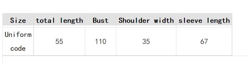 1. Все измерения указаны в см (1 см = 0,39 дюймов). Возможна разница в 2-3 см в соответствии с измерениями вручную. Пожалуйста, внимательно проверьте таблицу размеров перед покупкой товара.
