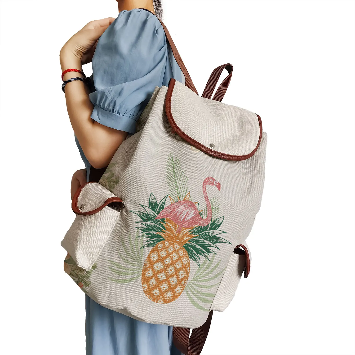Льняной рюкзак с цветочным принтом фламинго, красивая модная школьная сумка, Большой Вместительный рюкзак для подростка, портативная практичная сумка для книг