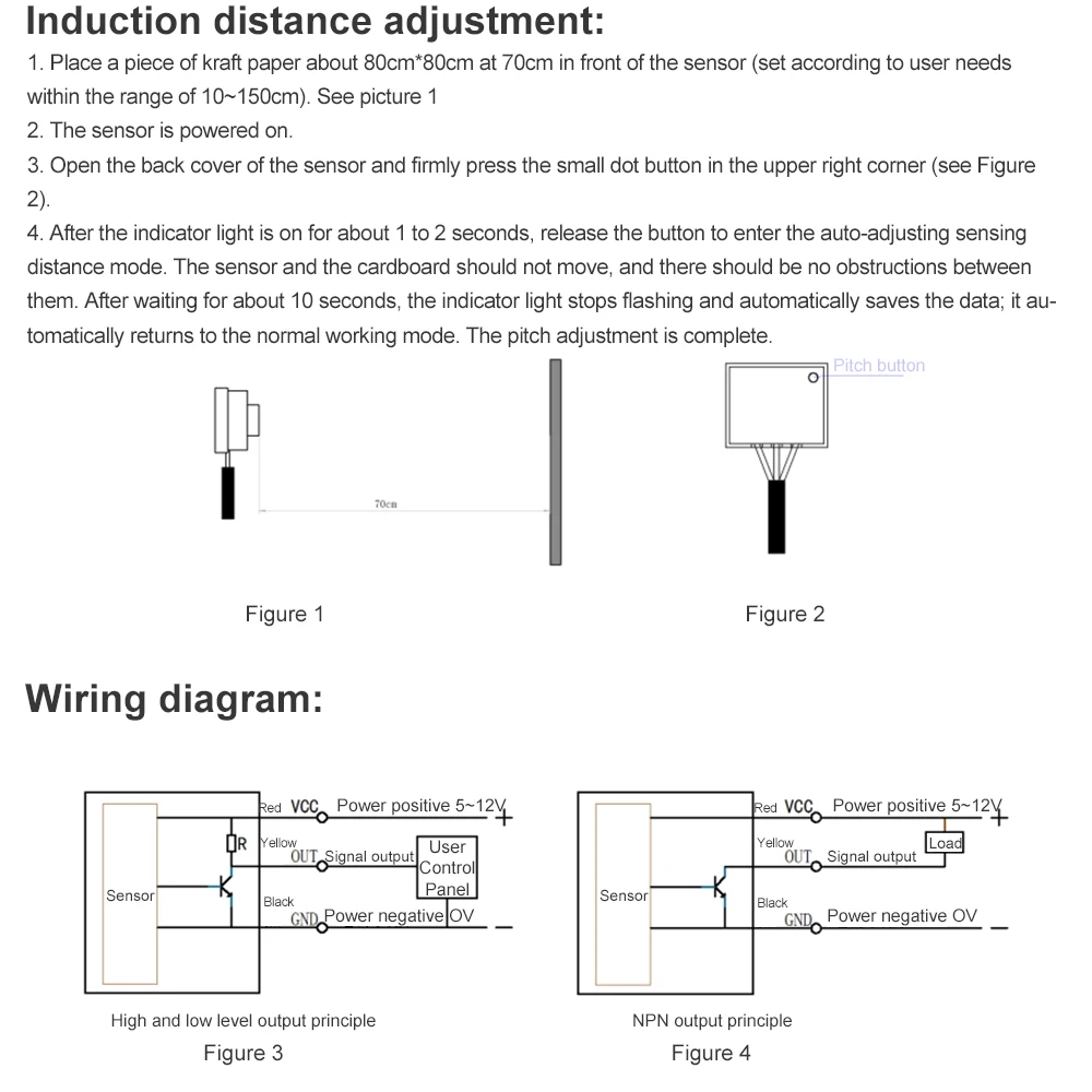 Метод регулировки расстояния срабатывания: Нажмите кнопку, чтобы автоматически откалибровать расстояние срабатывания, которое может быть сохранено после отключения питания