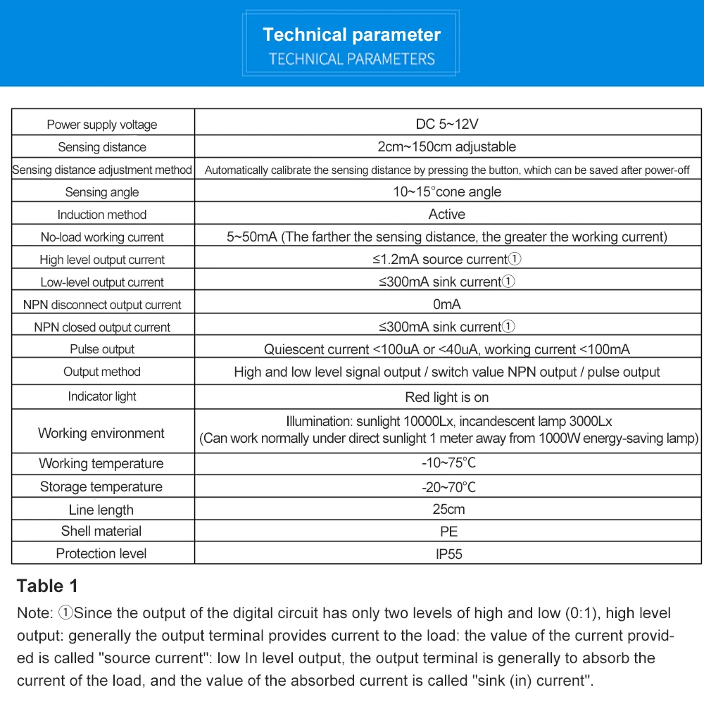 Индукционное расстояние: 2 см ~ 150 см регулируется