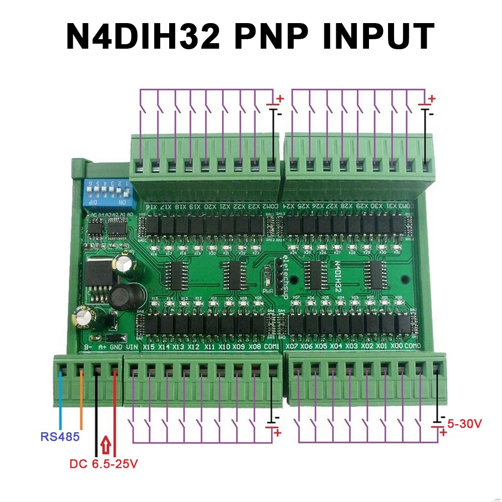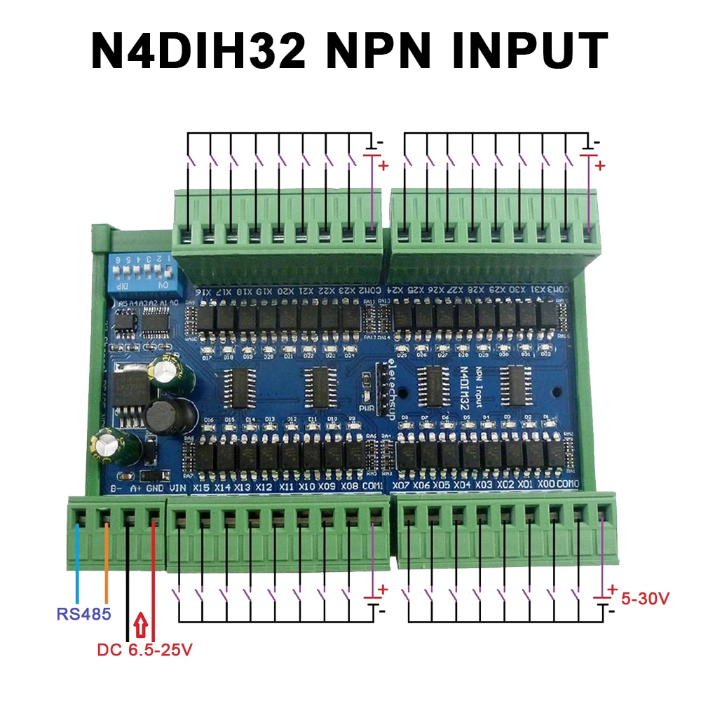 DC 12 V/24V 32CH оптической изоляцией DIN Rail RS485 Вход модуль контроллера PNP/NPN Переключатель цифровой коллектор RS485 Modbus RTU модуль