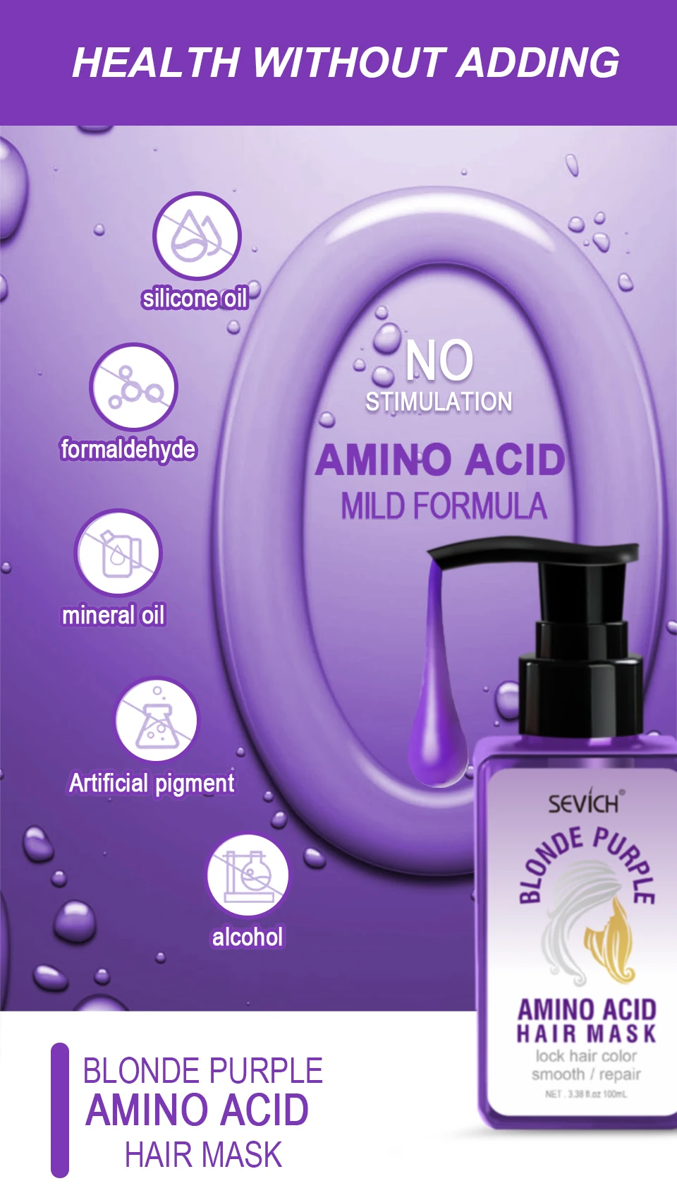 Использование аминокислот и растительных экстрактов мульти-ухода разглаживает поврежденные чешуйки волос, увлажняет и ухаживает за прядями волос, питает и укрепляет сердцевину, улучшает сухость волос, завивка и хрупкие секущиеся кончики, делает волосы светлыми и пушистыми, мягкими и блестящими.
