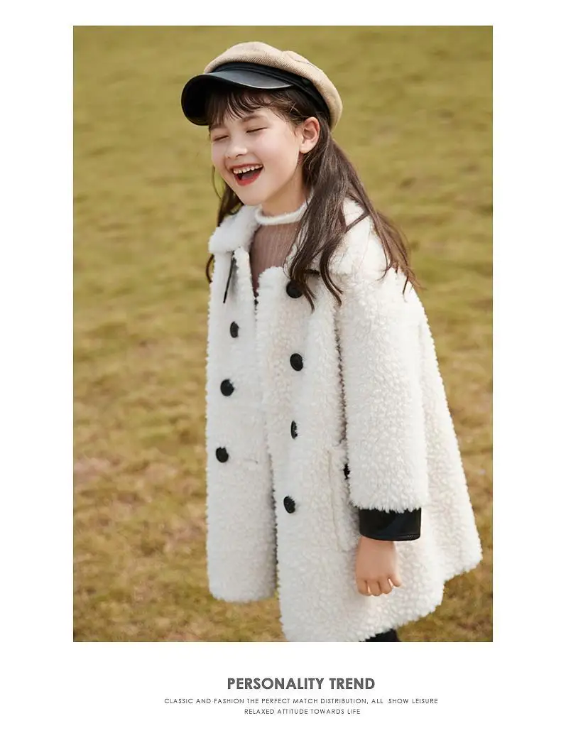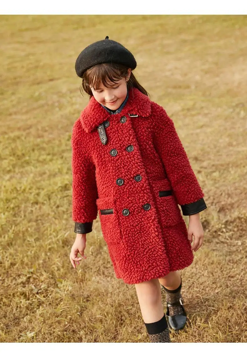 Детская куртка из овечьей шерсти для девочек 4-14 лет, длинное двубортное пальто для девочек бежевого и красного цвета, модная детская куртка для подростков, верхняя одежда