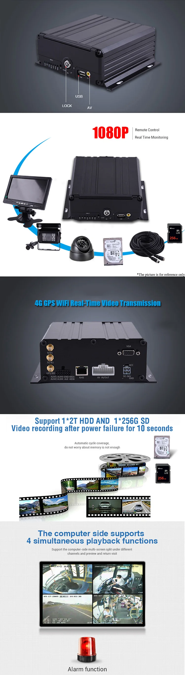 2.Поддержка 4CH1080P/720P HD видео входы в реальном времени. Кроме того, поддержка 4CH аналоговых камер входов или составных входов для 2CH HD камер и 2CH аналоговых камер.