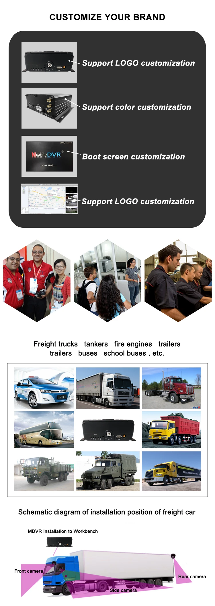 О: для MDVRS гарантия составляет 12 месяцев, для камер гарантия составляет 24 месяца. Но на самом деле мы предоставляем услуги по пожизненному обслуживанию, в течение гарантийного срока, нужно только оплатить стоимость запасных частей, другие услуги по обслуживанию бесплатны.