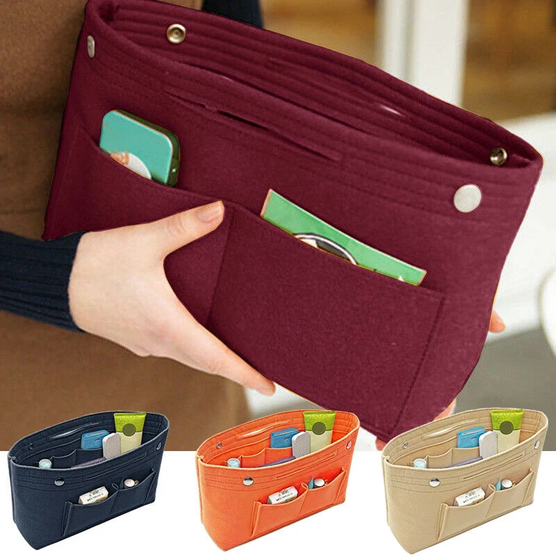 Женская сумка с несколькими карманами, косметический Органайзер, сумка из войлока, удобная вставка, сумки для хранения