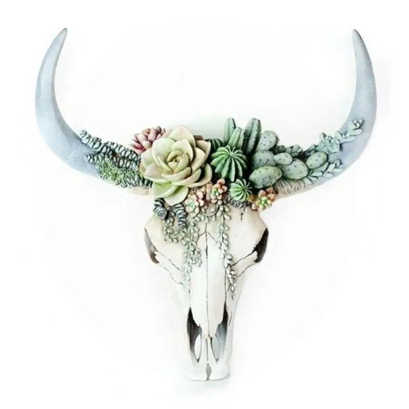 Суккулентный цветок корова череп Настенный декор детские цветы садовые украшения подвеска в форме головы быка украшение из смолы украшение на стену ремесла