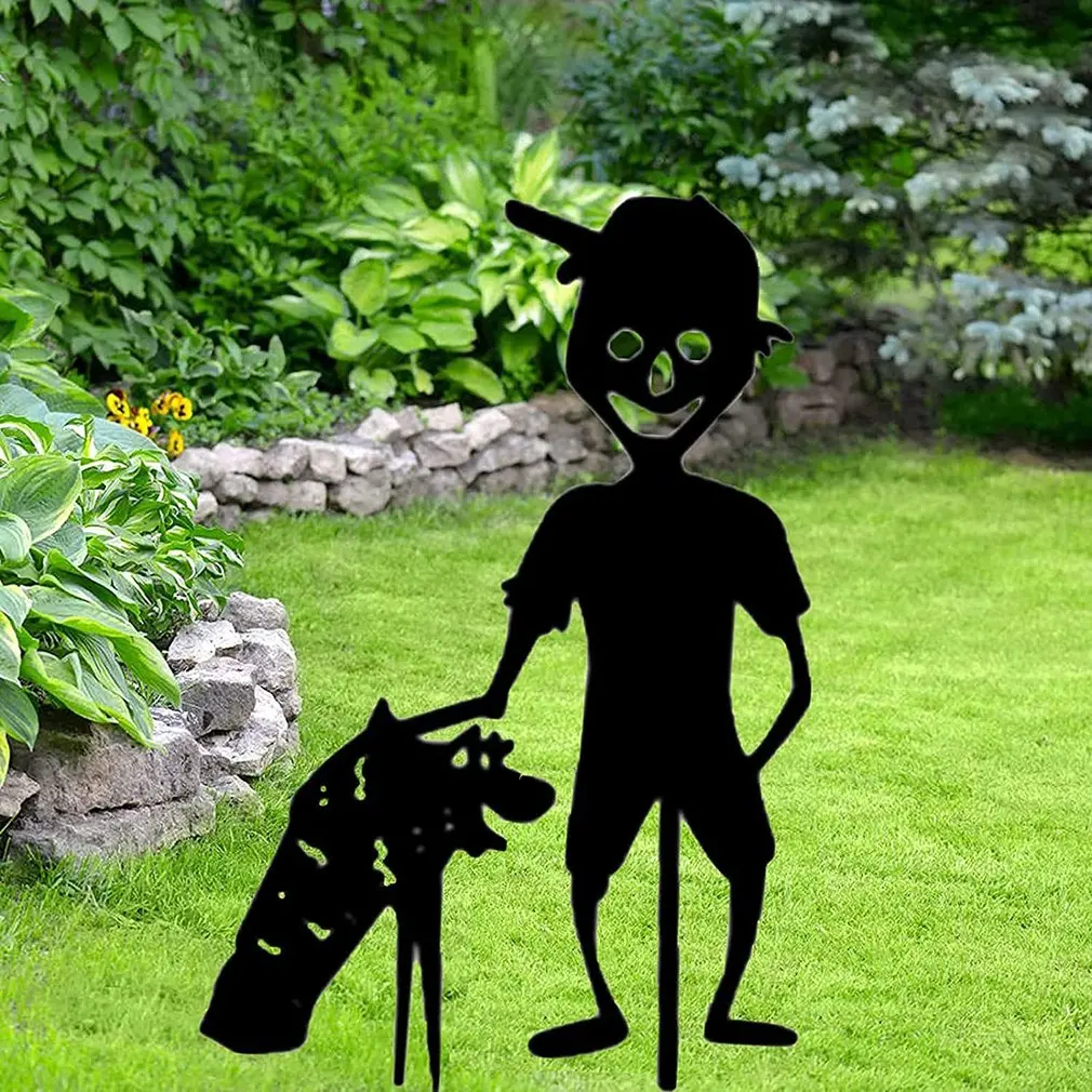 Силуэт Маленький Дьявол садовый силуэт металлический дворовый столб наружный силуэт Художественный орнамент для двора украшение жуткий оттенок искусство