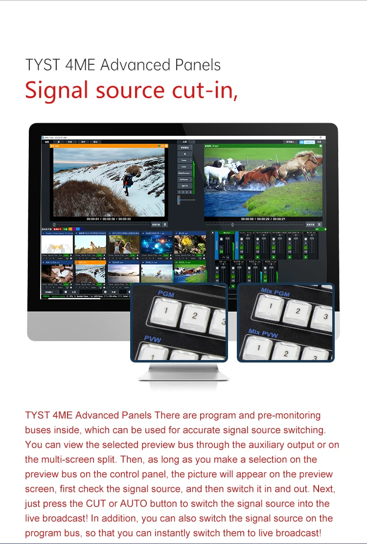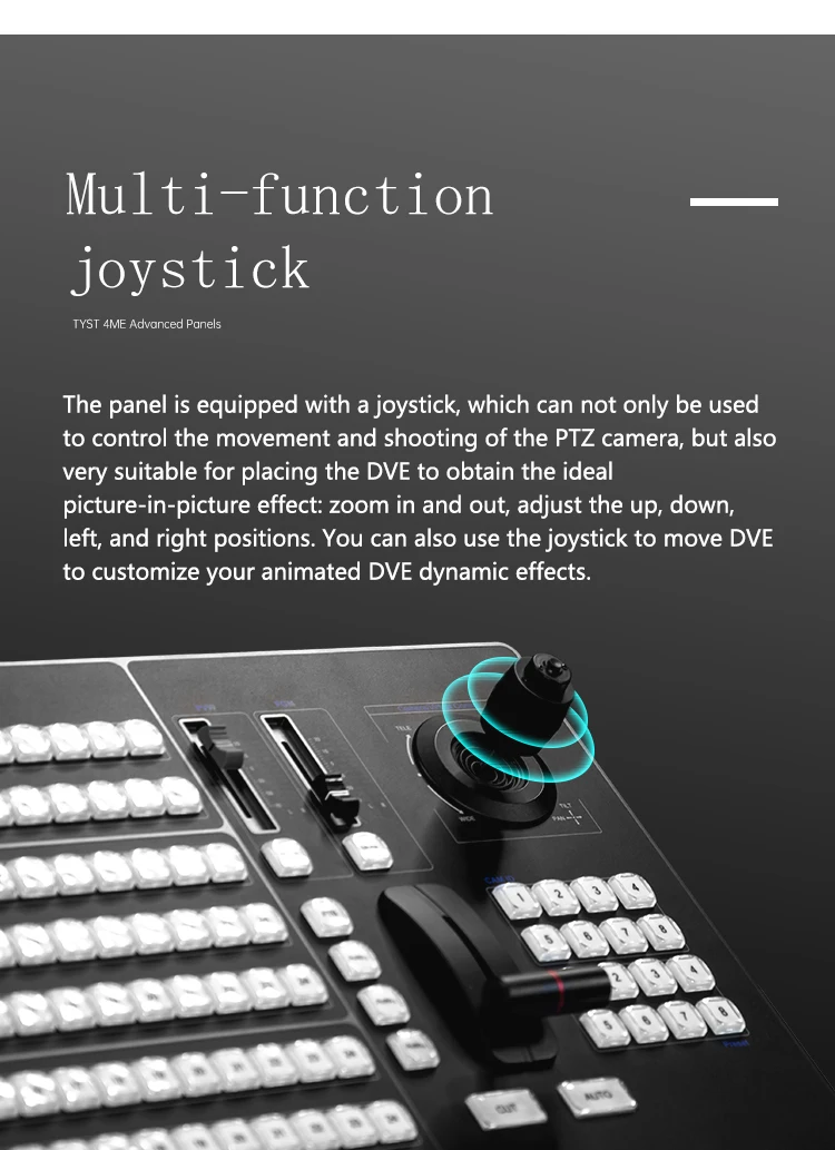 TYST 4M/E Advanced Panel switcher panel is a pure hardware director switcher for vmix live broadcast system. It adopts the international universal USB MIDI protocol interface, which is compatible with live broadcast software that supports MIDI protocol on the market. Improve your work efficiency.