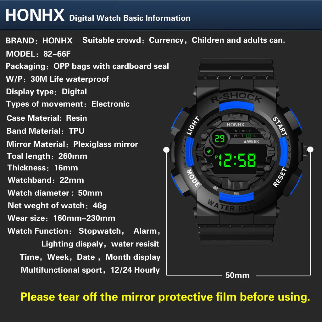 12. Водонепроницаемый: Эти электронные часы для обычных водонепроницаемых, можно мыть, брызгать и