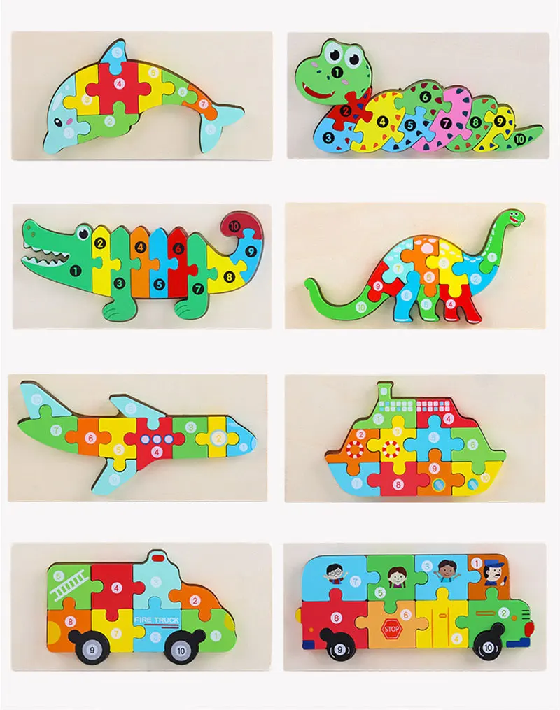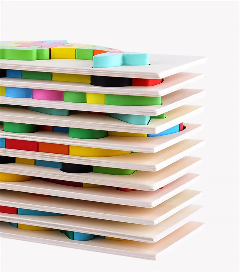 Деревянные пазлы для детей, 3D пазлы с животными для малышей От 3 до 5 лет, Обучающие Развивающие игрушки Монтессори для мальчиков и девочек