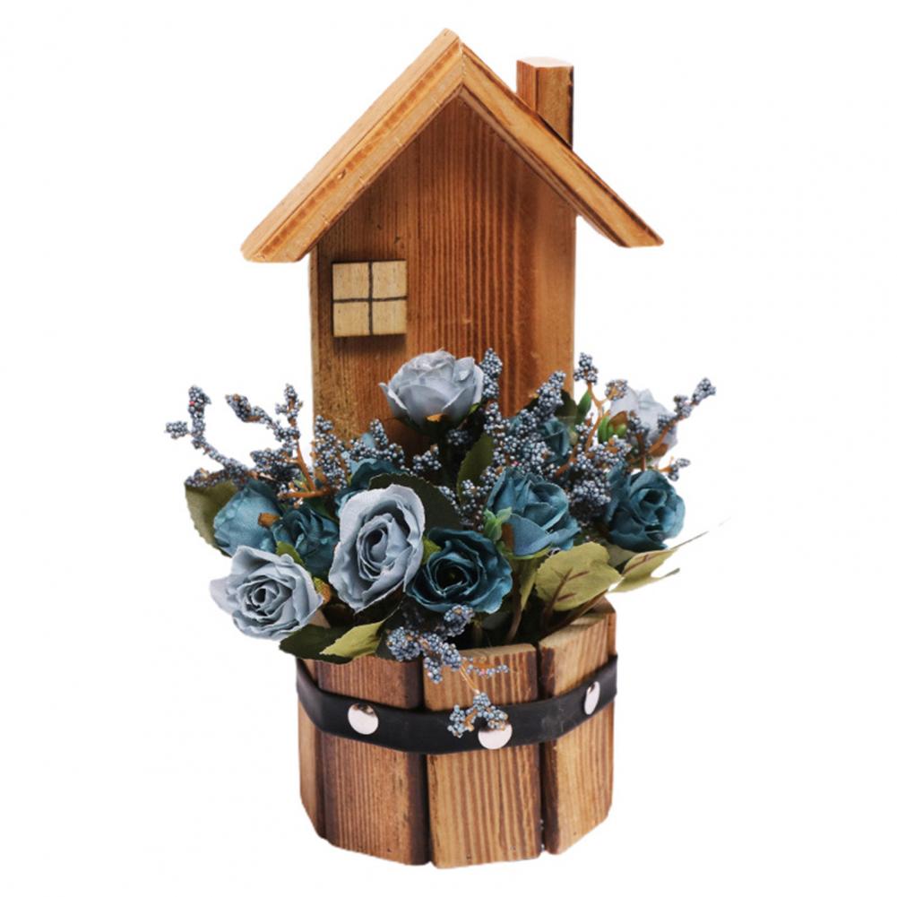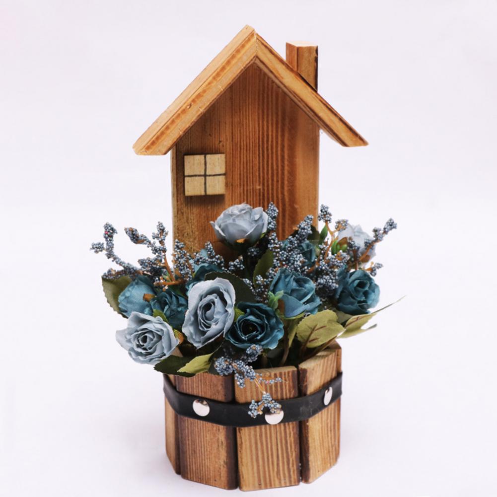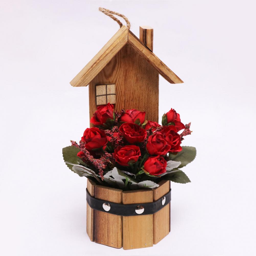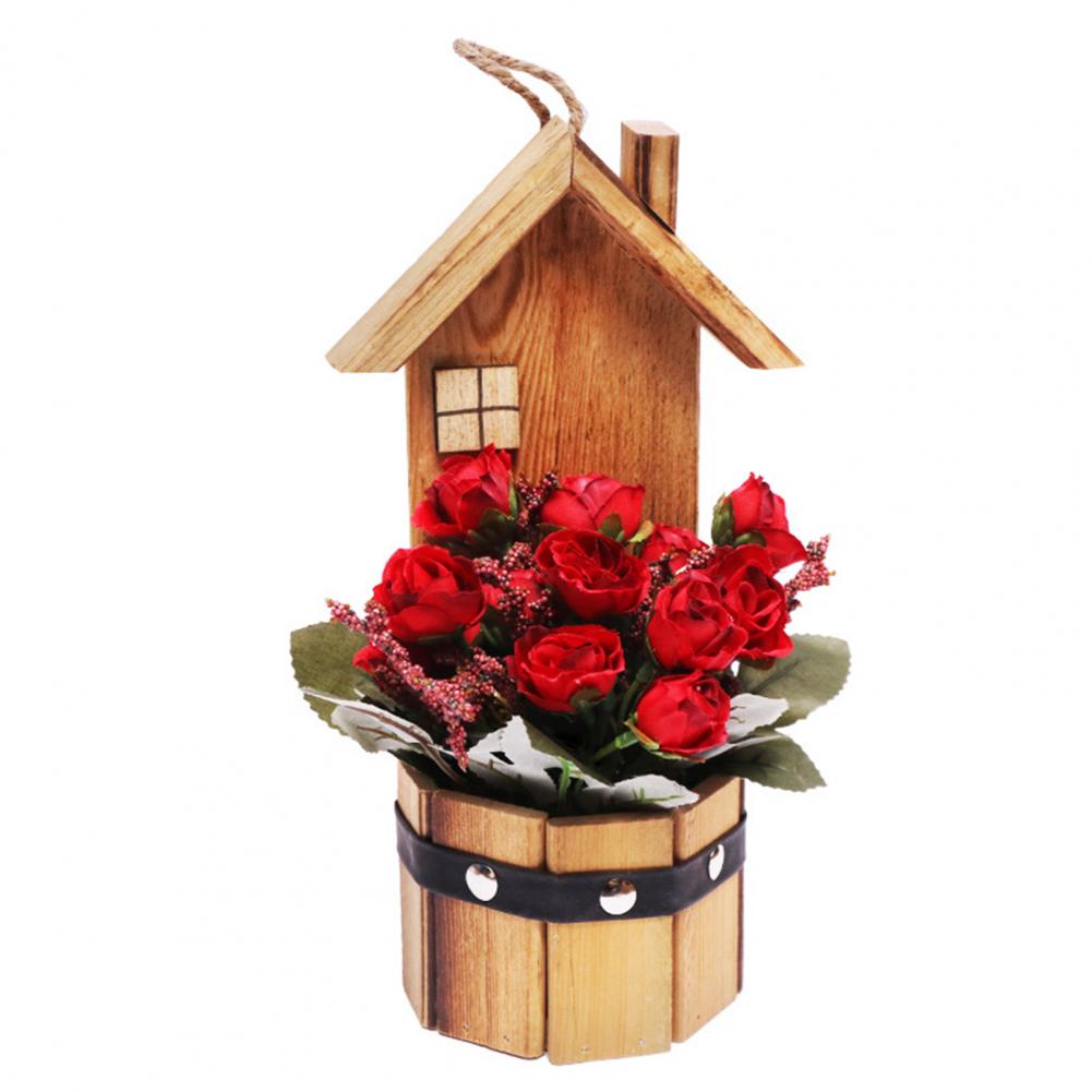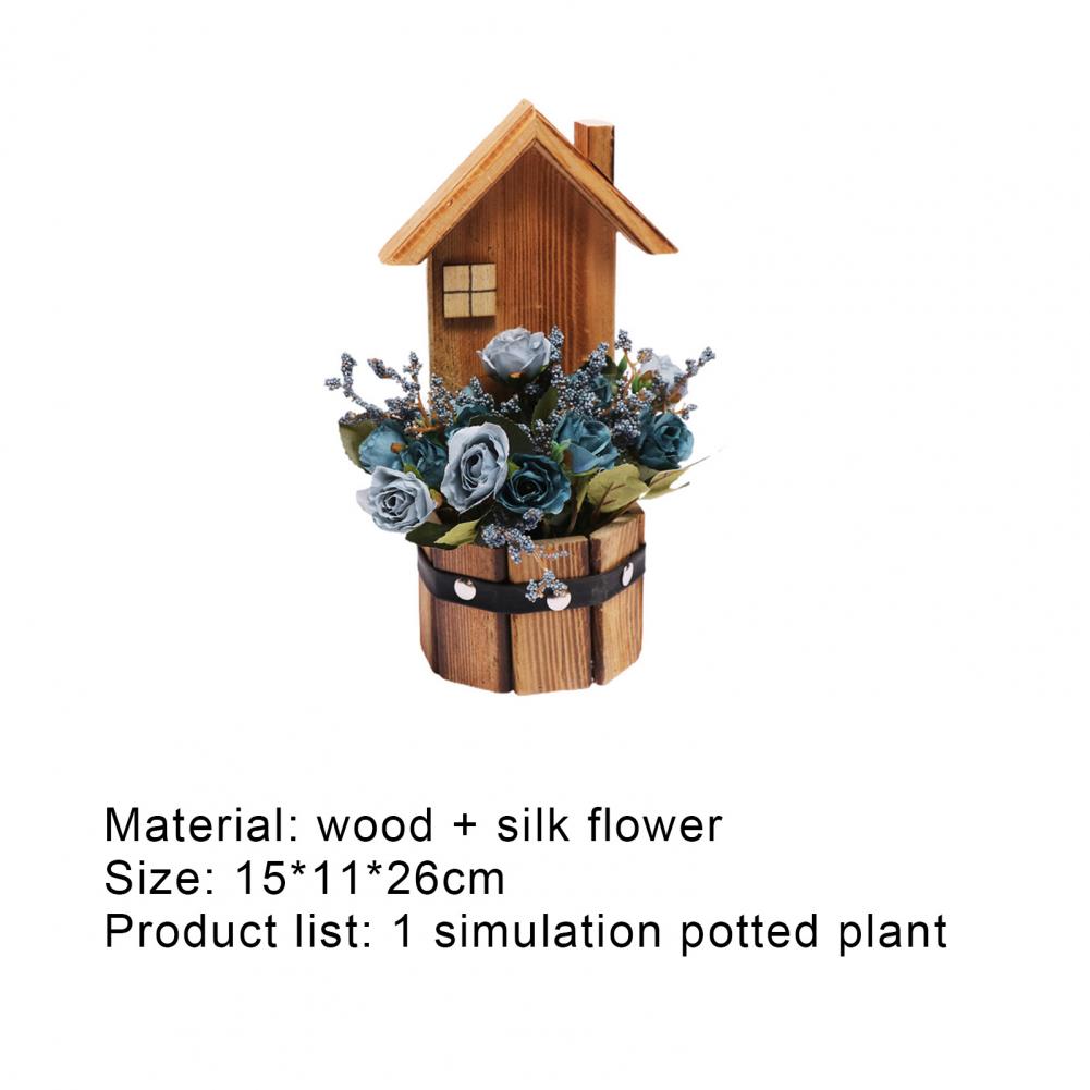 Древесина и искусственный шелк цветочный материал, это поддельное растение в горшке розы является прочным и экологически чистым.