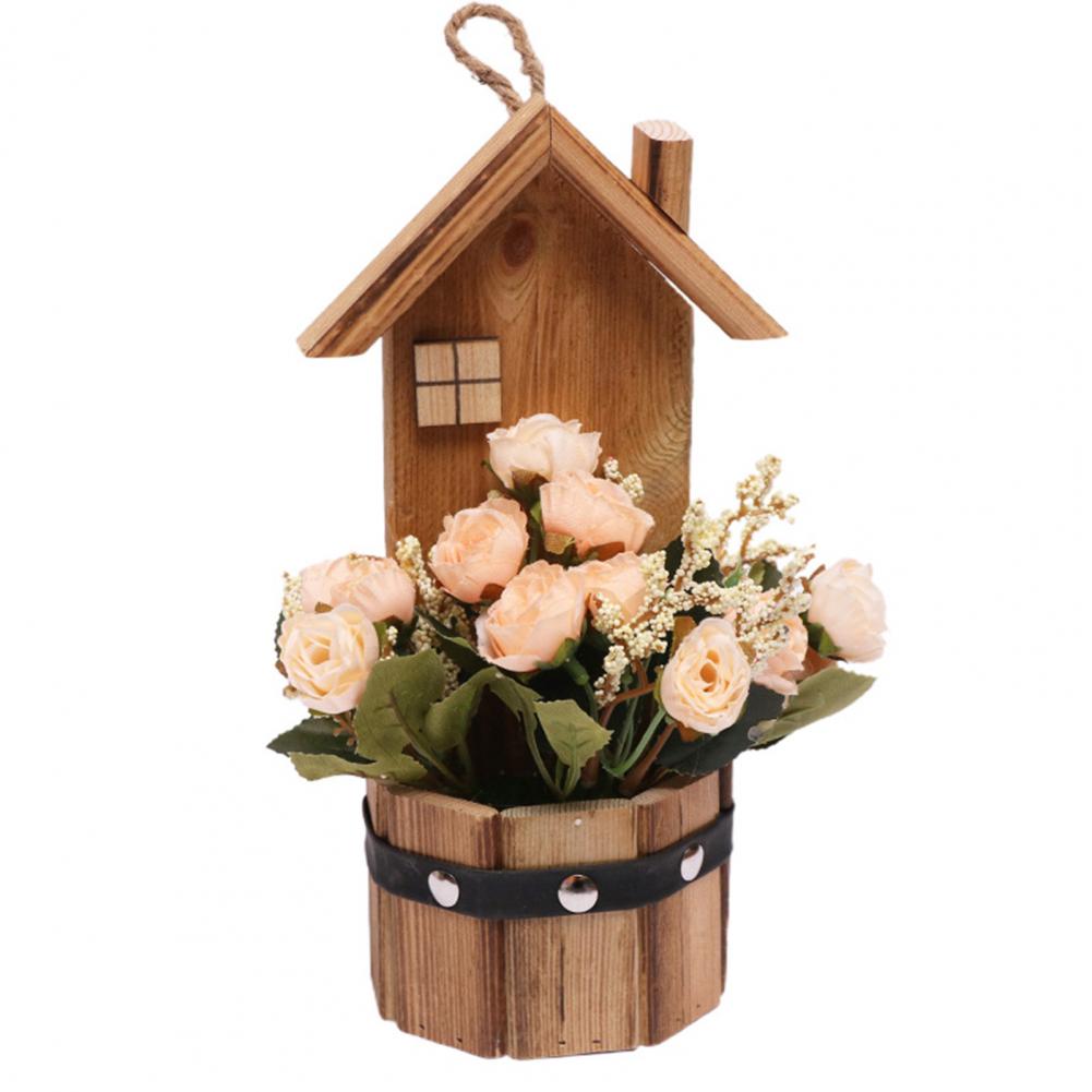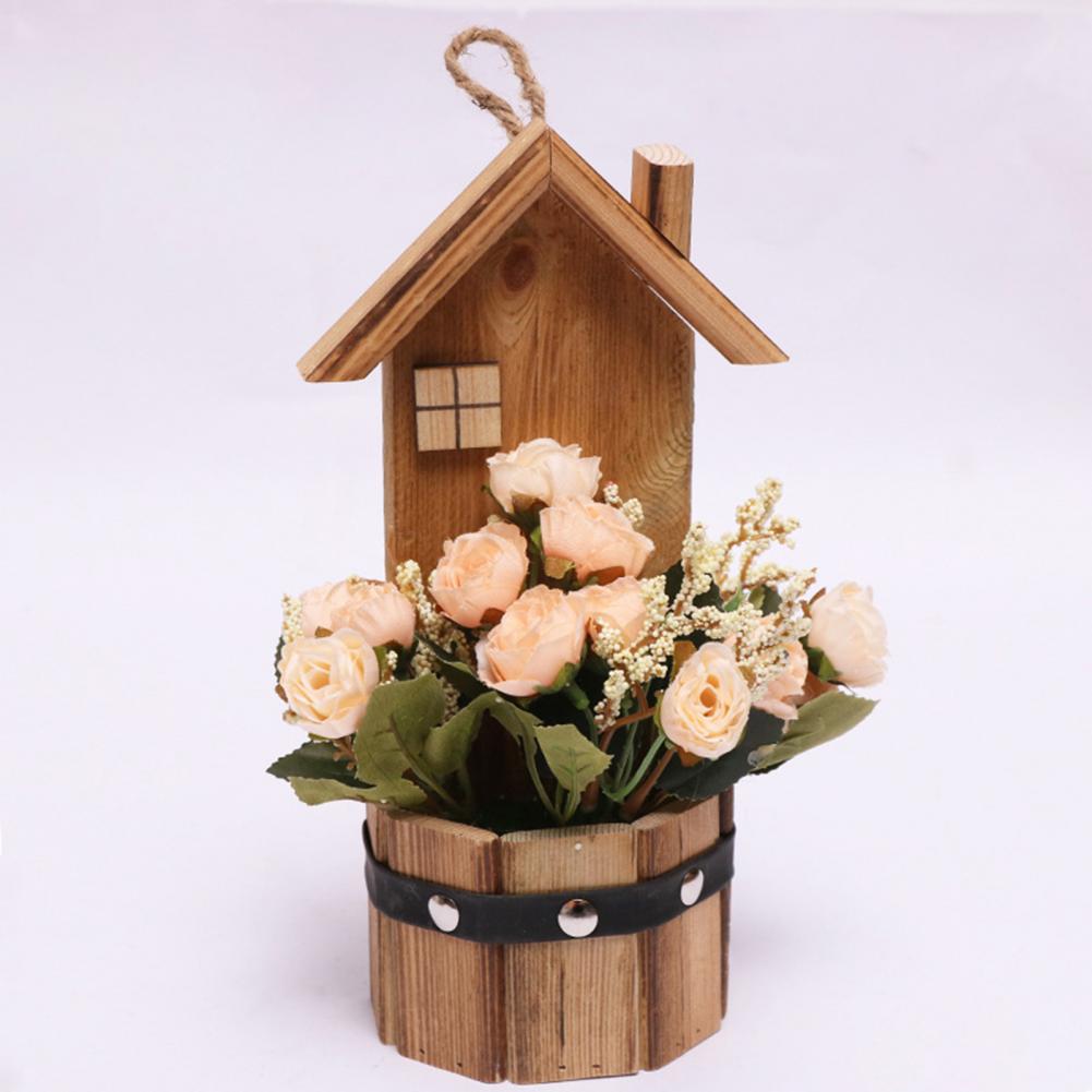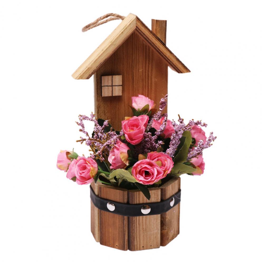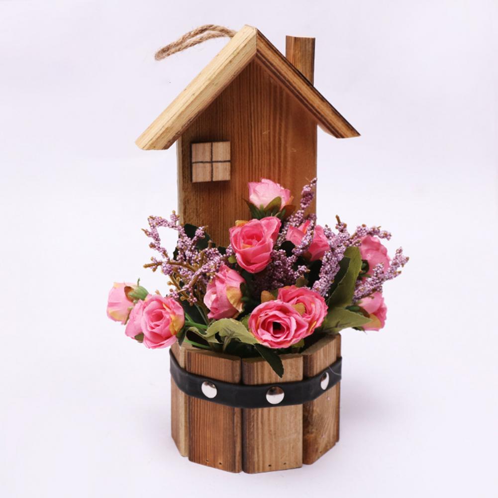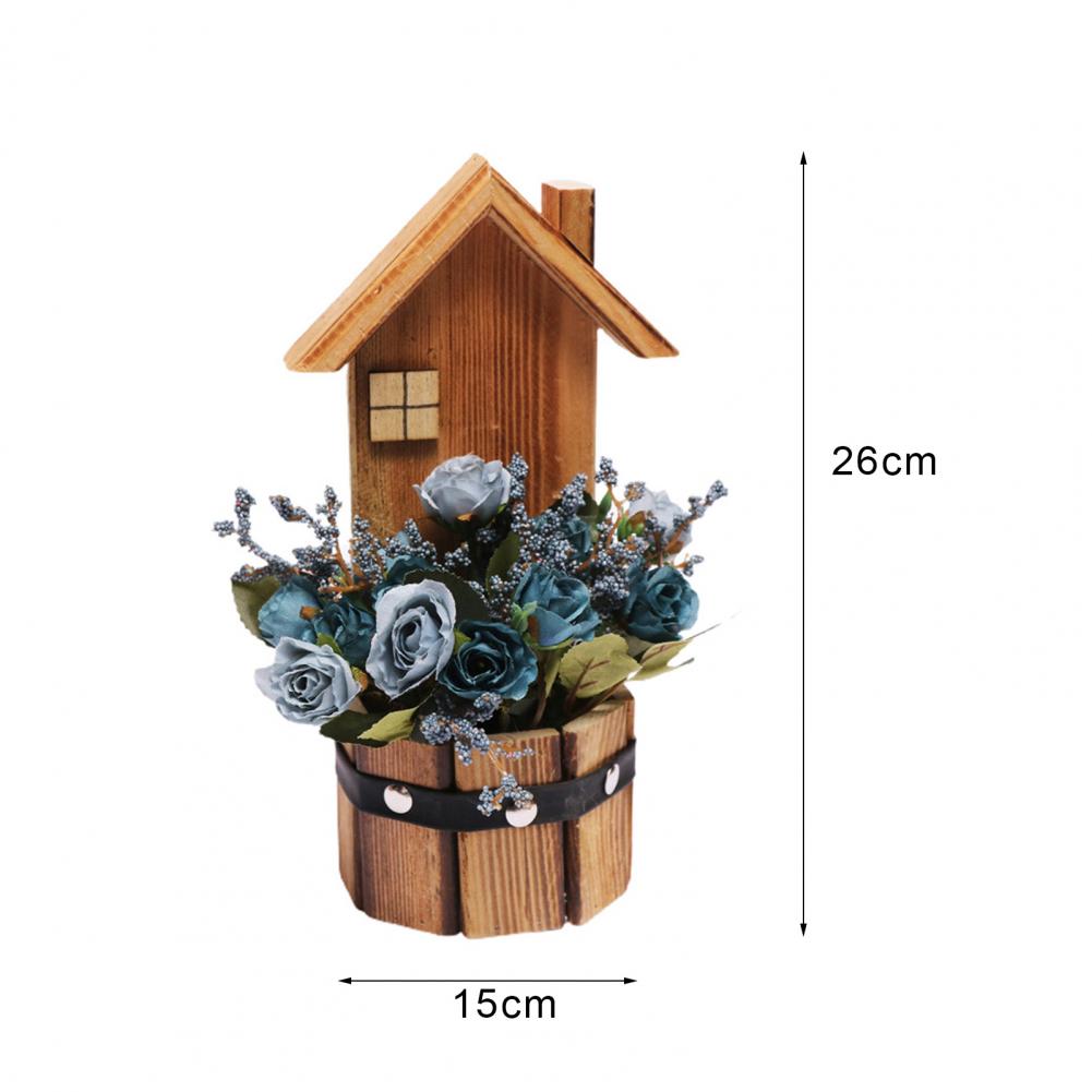 Древесина и искусственный шелк цветочный материал, это поддельное растение в горшке розы является прочным и экологически чистым.