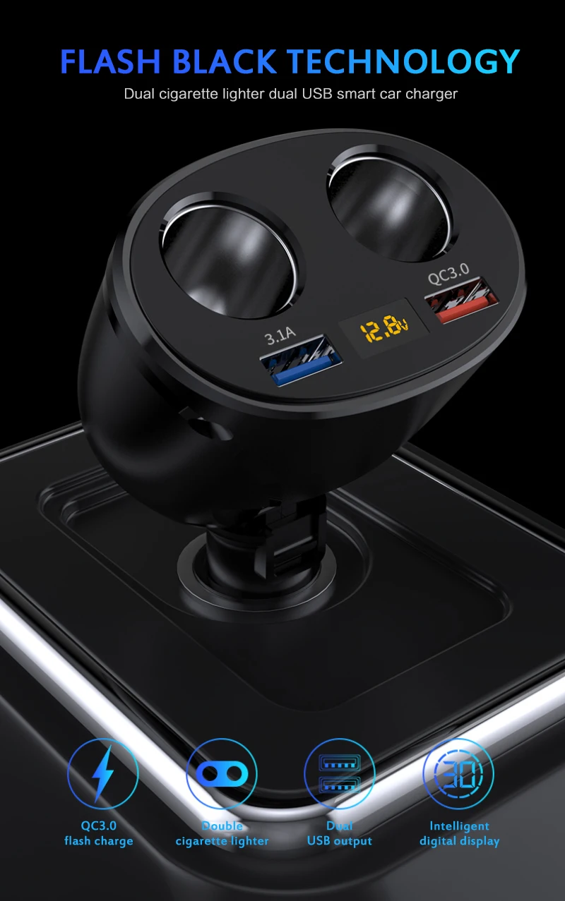 1. Название продукта: вращающийся цифровой дисплей, двойная Зажигалка для быстрой зарядки автомобиля