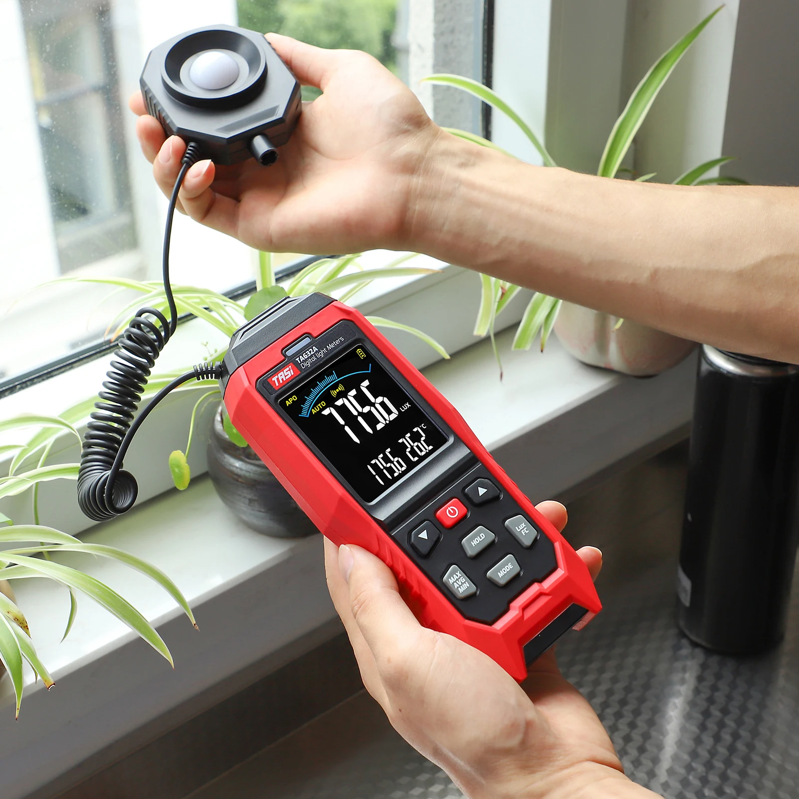 Удобный Дизайн Сплит-типа: с компактным размером и легким весом, датчик измерения и основной корпус люксового счетчика являются съемными и соединены с выдвижной пружиной, вы можете держать и управлять им очень удобно.