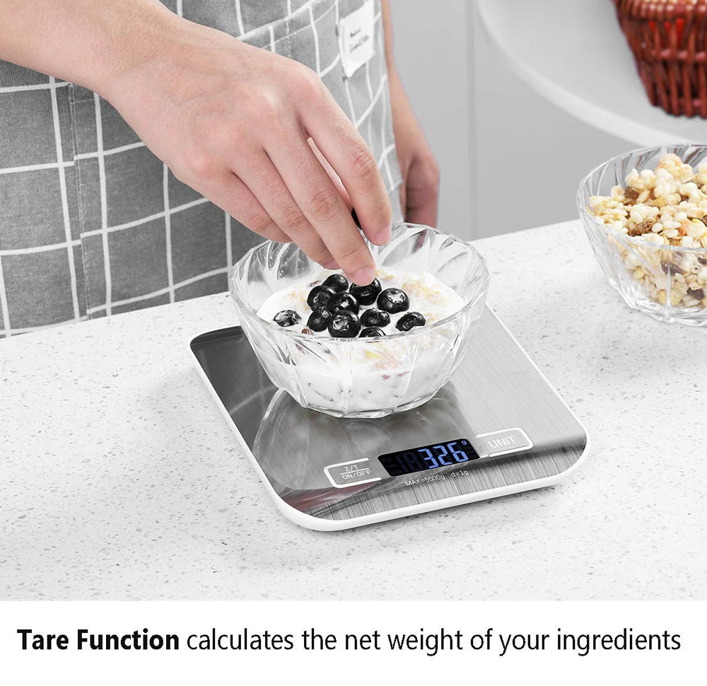 【 Высокоточный нетто】: Этот цифровой шкалой еды оснащена четырьмя встроенный высокоточный нагрузки датчики имеют 0,05 oz/1g с шагом повышения напряжения при добавлении ингредиентов, водостойкостью 3/5/10 кг