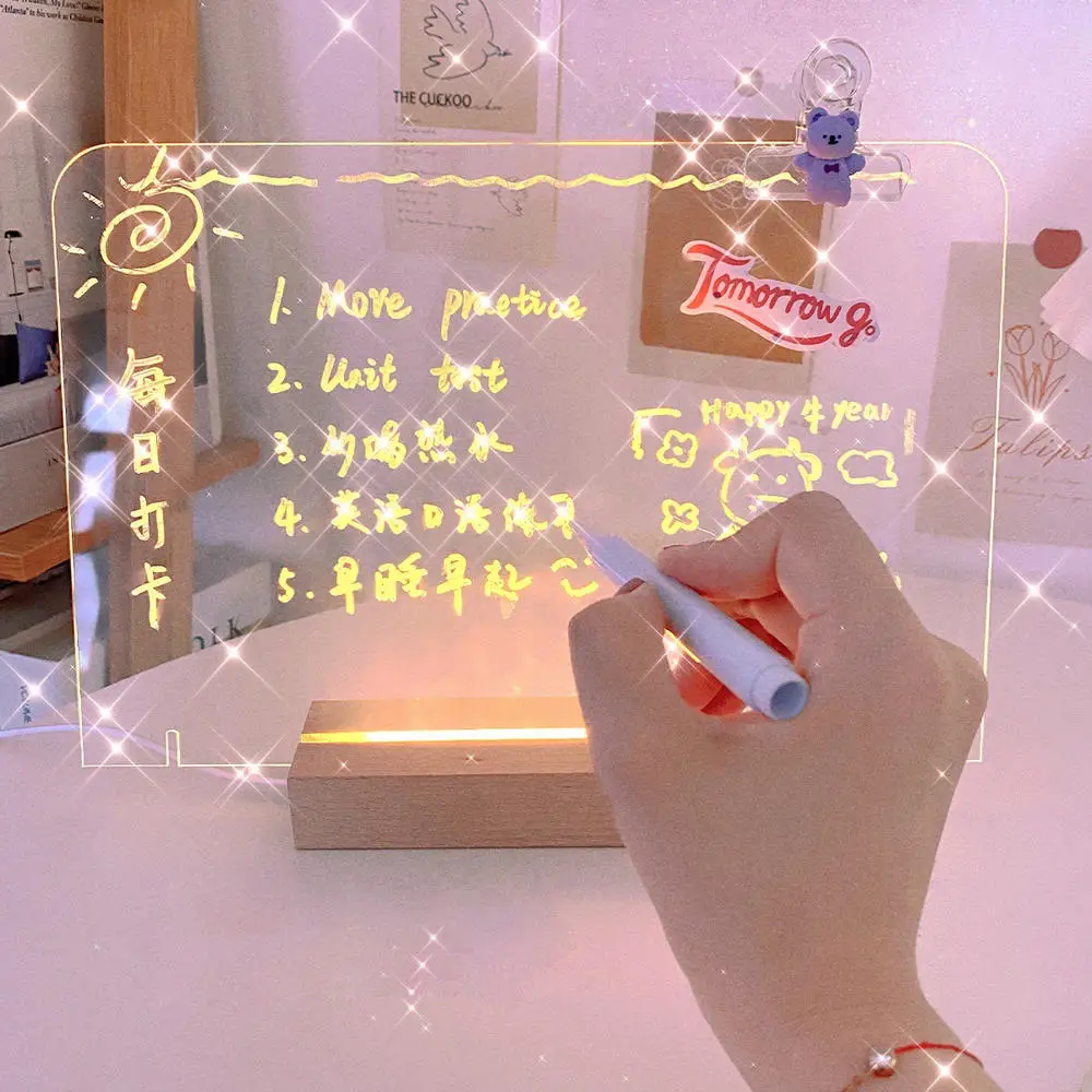 2021 креативный Прозрачный USB акриловый ежедневный блокнот доска для записей с деревянной подставкой Держатель светодиодный блокнот для записей напоминание