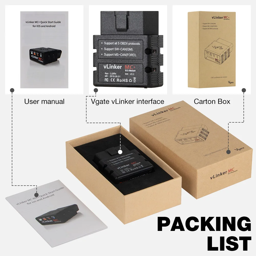 Vgate VLinker MC + BT3.0/4,0/WIFI упаковочный лист
