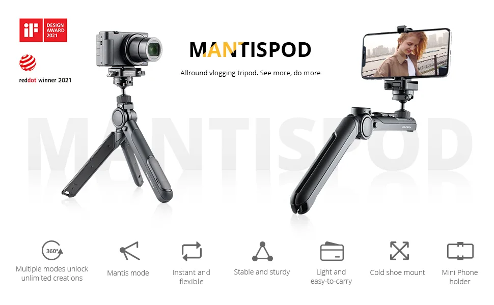 ● 7 режимов: Наша подставка для штатива мини-камеры может использоваться как расширенный режим, режим пониженного обзора, режим повышенного штатива, режим мантирования, режим мобильной видеосъемки, режим вертикальной съемки, ручной режим. Режим mantis позволяет повесить штатив с любой поверхности, чтобы запечатлеть каждый угол. Мгновенный и гибкий. Ручной для штатива, портретный для пейзажа