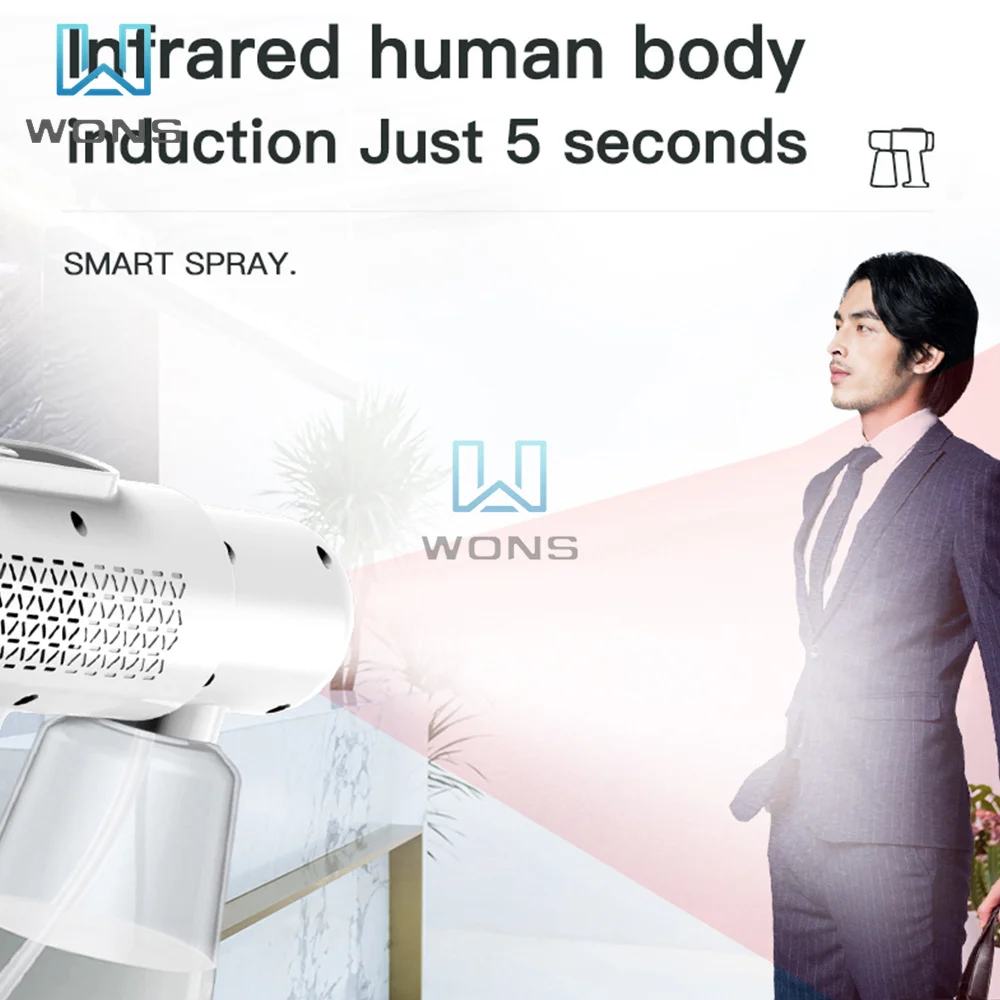 4. Инфракрасная индукция: распылитель оснащен точным инфракрасным датчиком, спрей включается за одну секунду, и Спрей автоматически устраняется за 5 секунд, которые могут освободить ваши руки и дать вам лучший опыт и умное обслуживание.