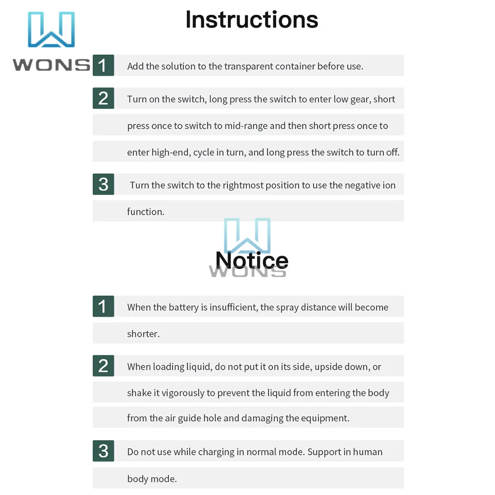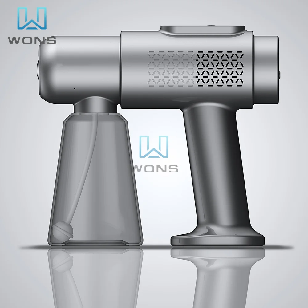 3. Конструкция с тремя зубьями: распылитель имеет трехзубчатую конструкцию низкого класса, среднего и высокого класса, вы можете регулировать размер тумана в соответствии с вашими потребностями. Одна клавиша управления пульверизатором, переключение передач и режим, удобный и простой, без задержки запотевания, 6 синий светильник, улучшенная стерилизация, дезинфицирующее средство может быть добавлено по мере необходимости, тонкое распыление без распыления воды.