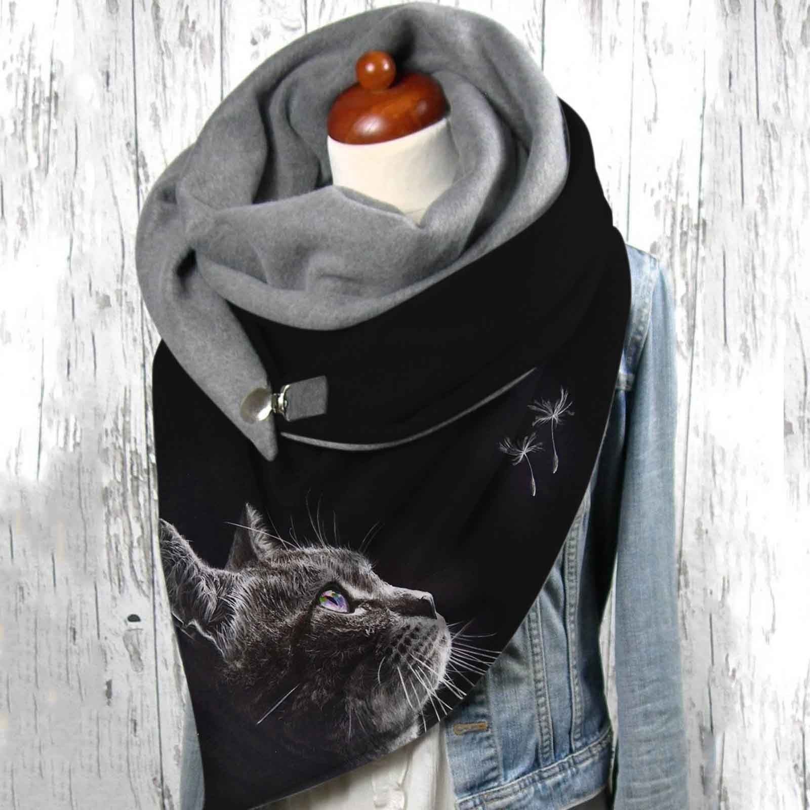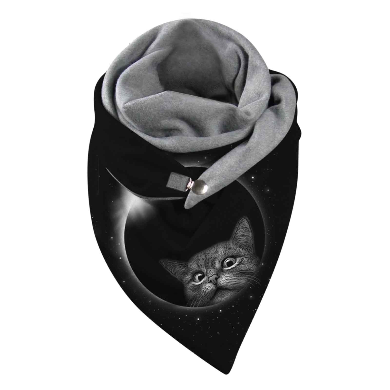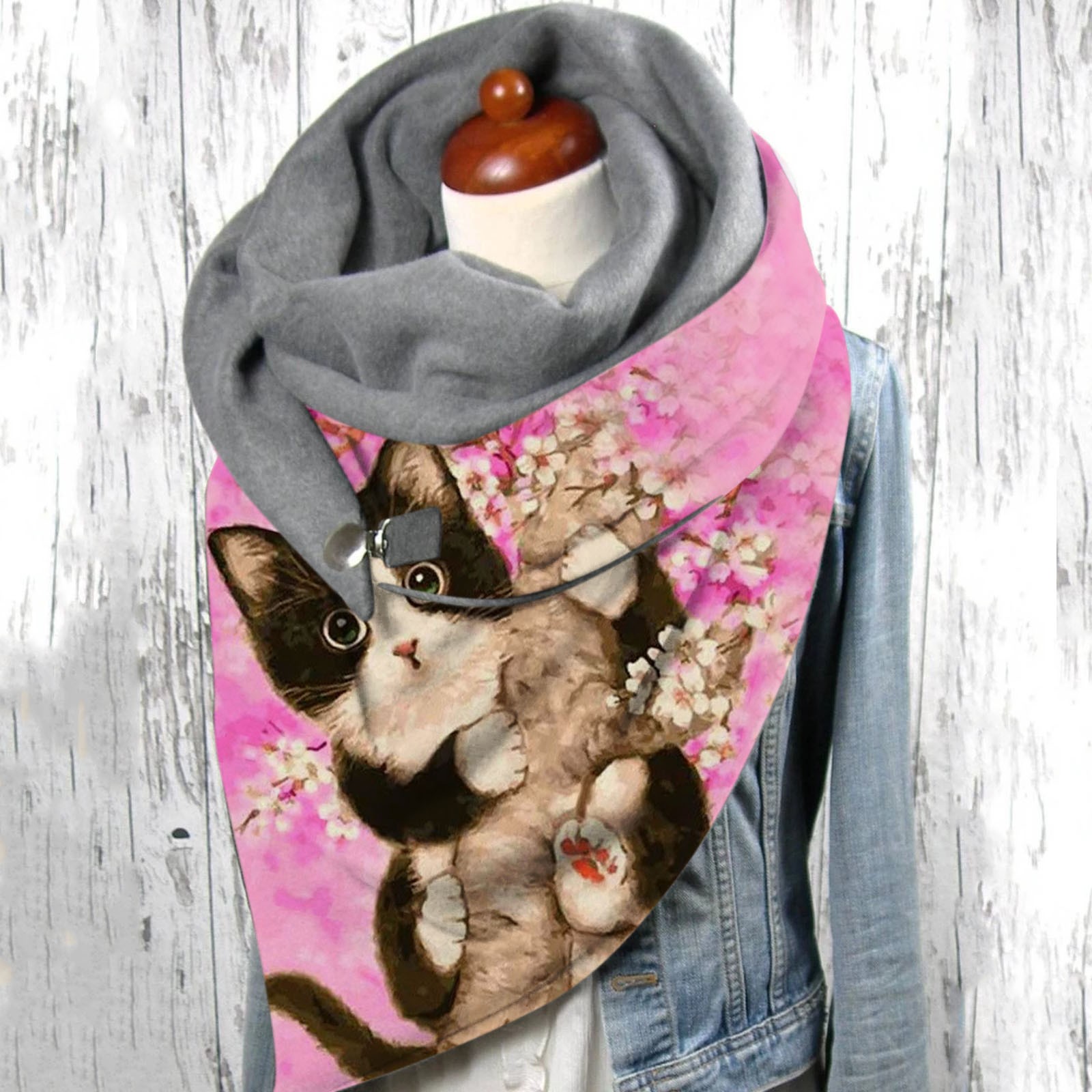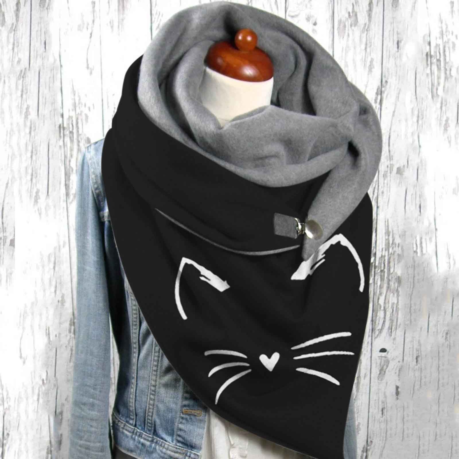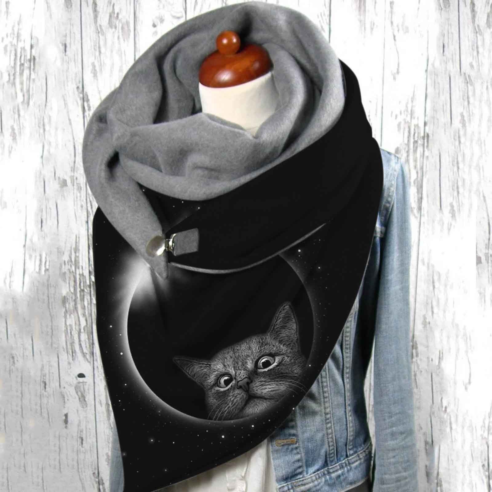 Универсальный осенне-зимний теплый двухслойный мягкий удобный шарф с принтом кошки
