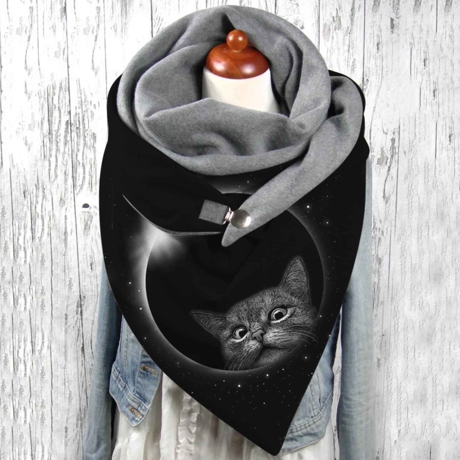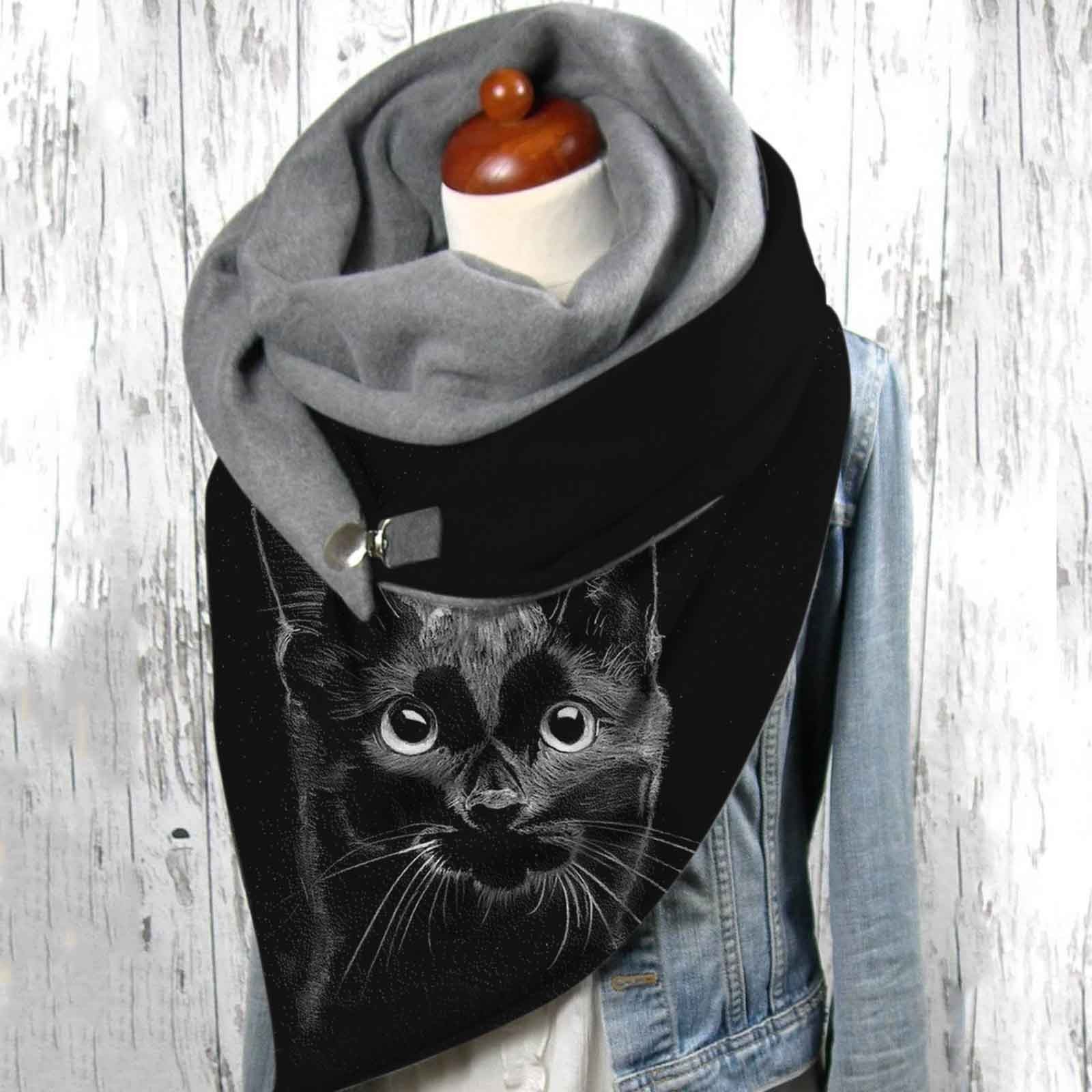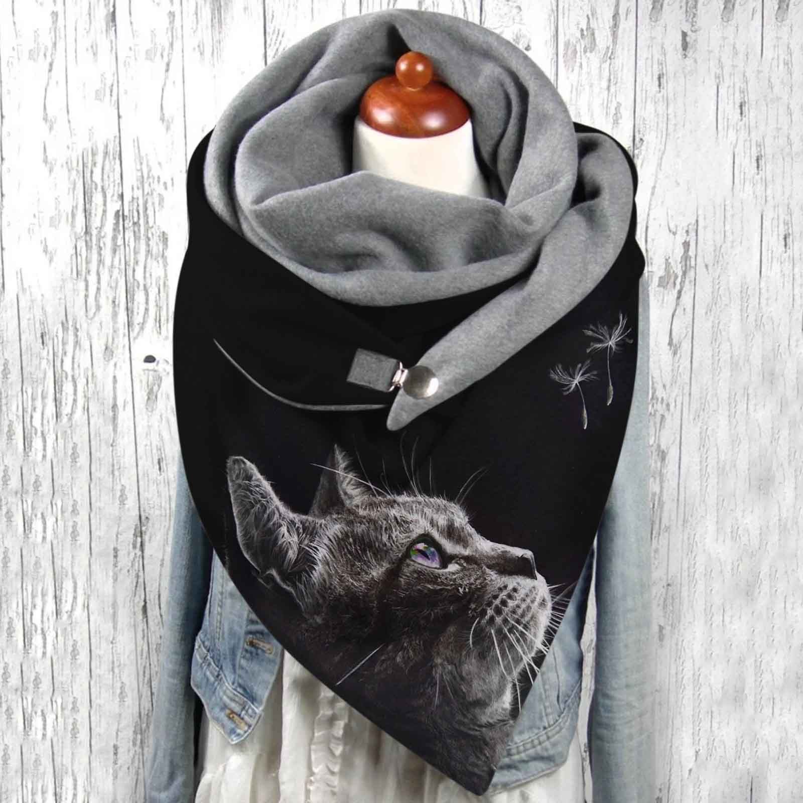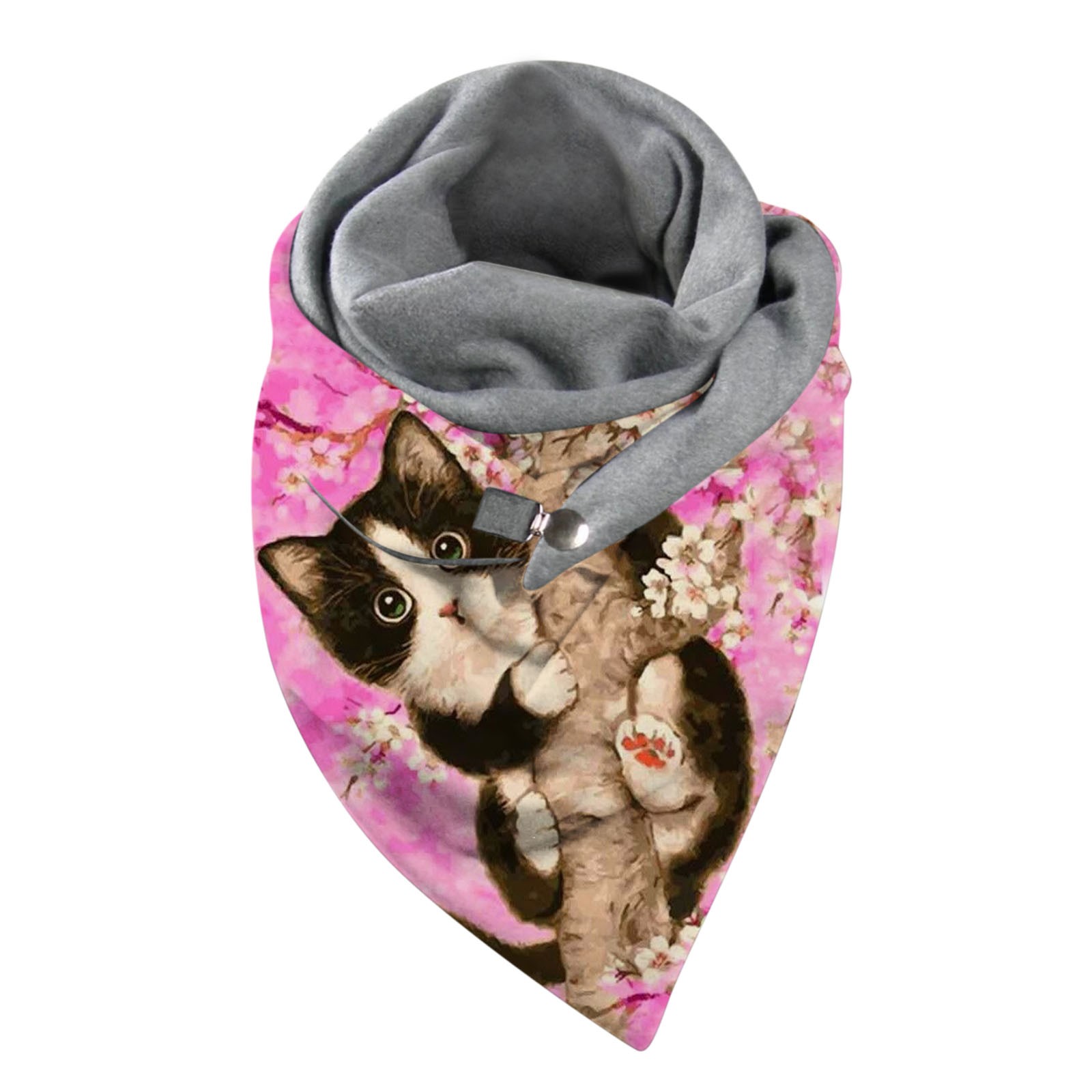 Универсальный осенне-зимний теплый двухслойный мягкий удобный шарф с принтом кошки