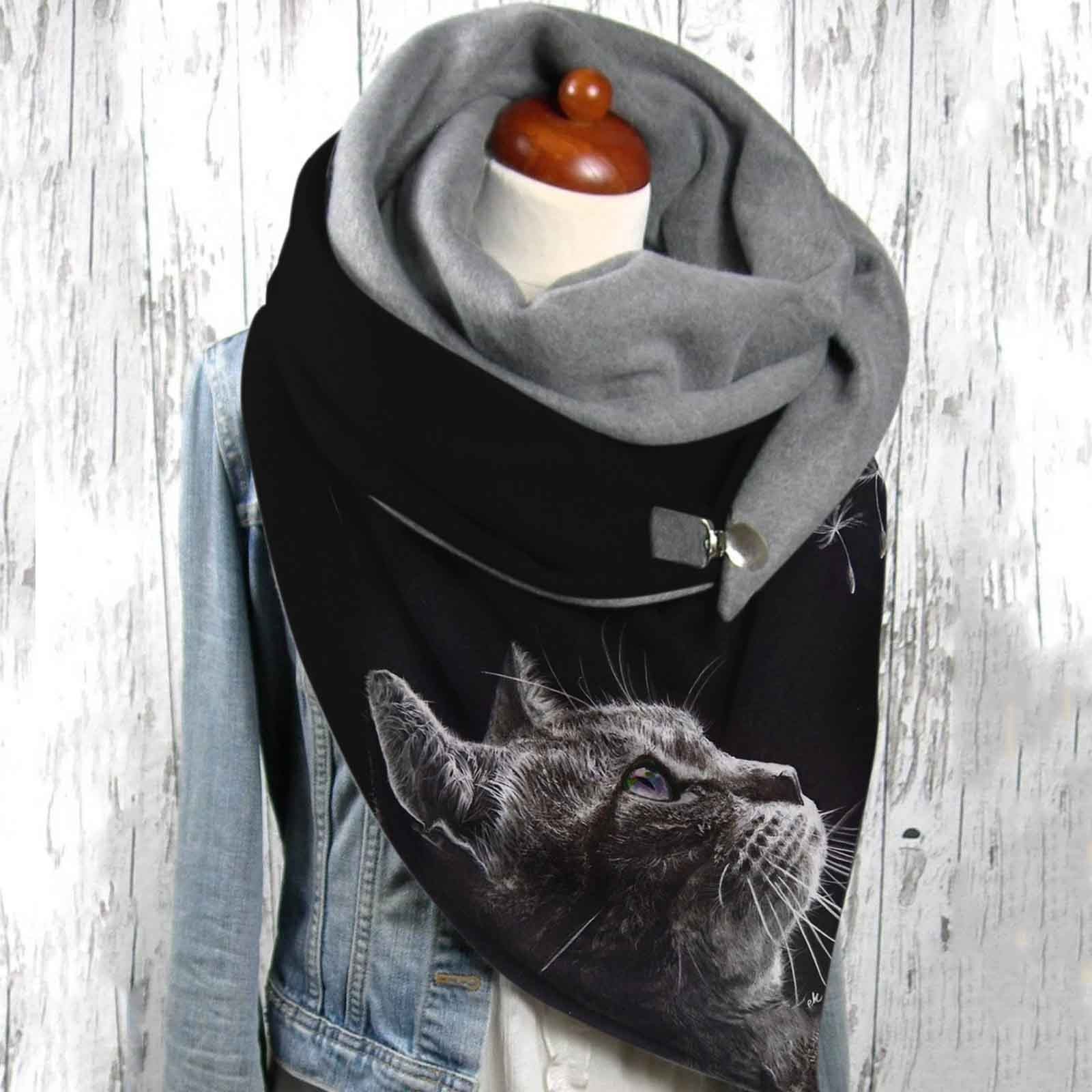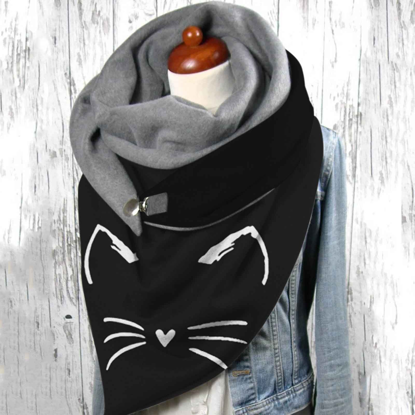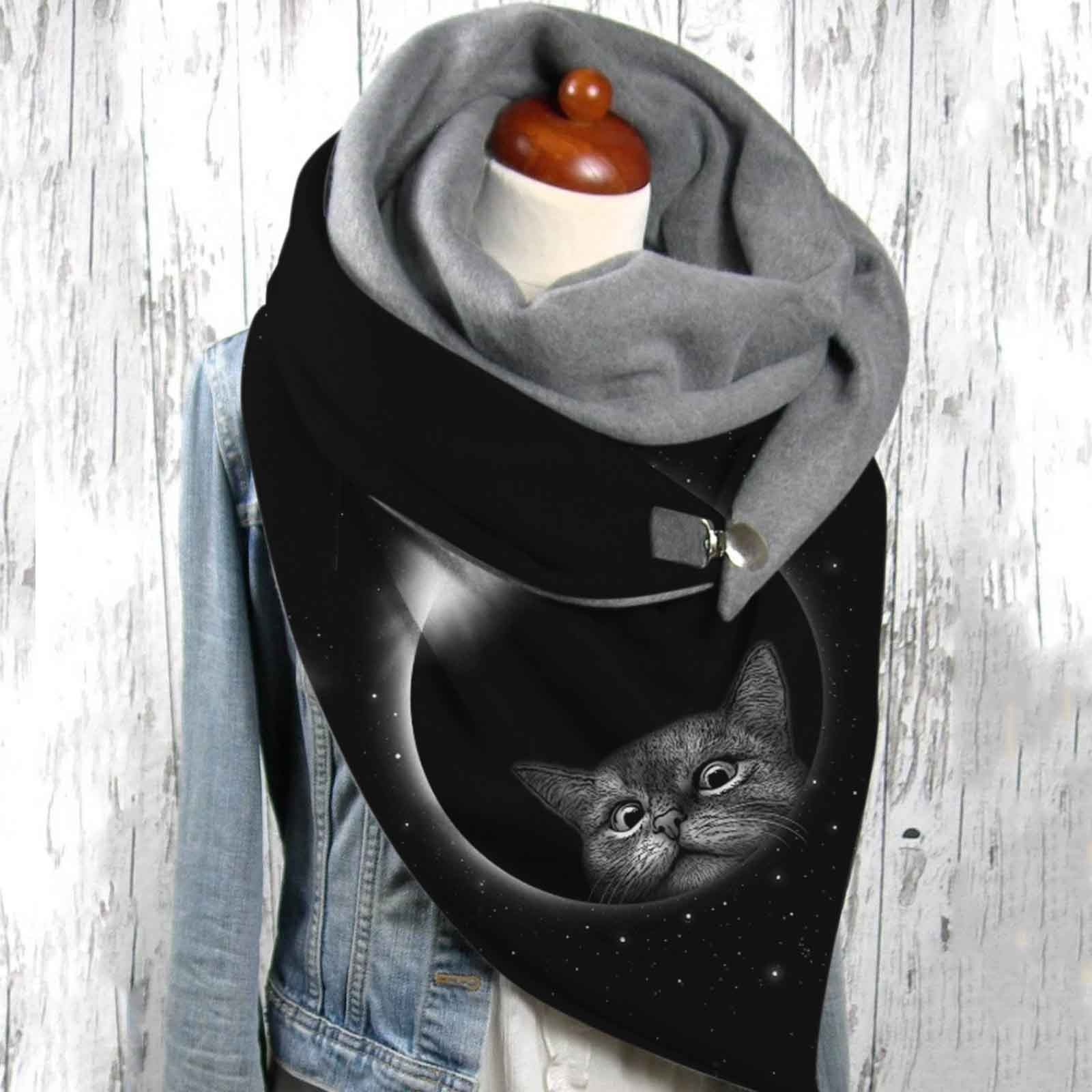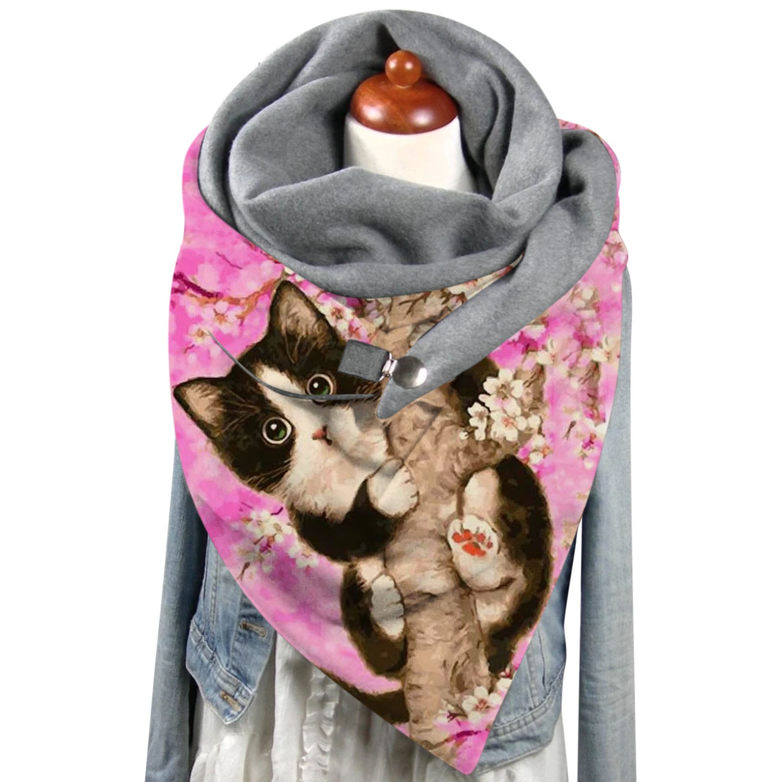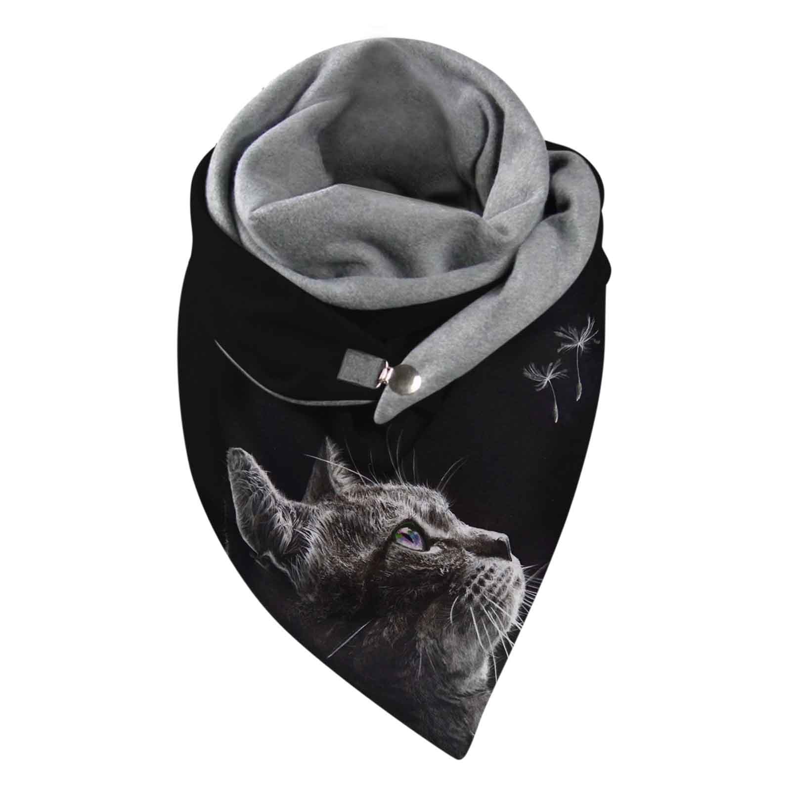 Универсальный осенне-зимний теплый двухслойный мягкий удобный шарф с принтом кошки