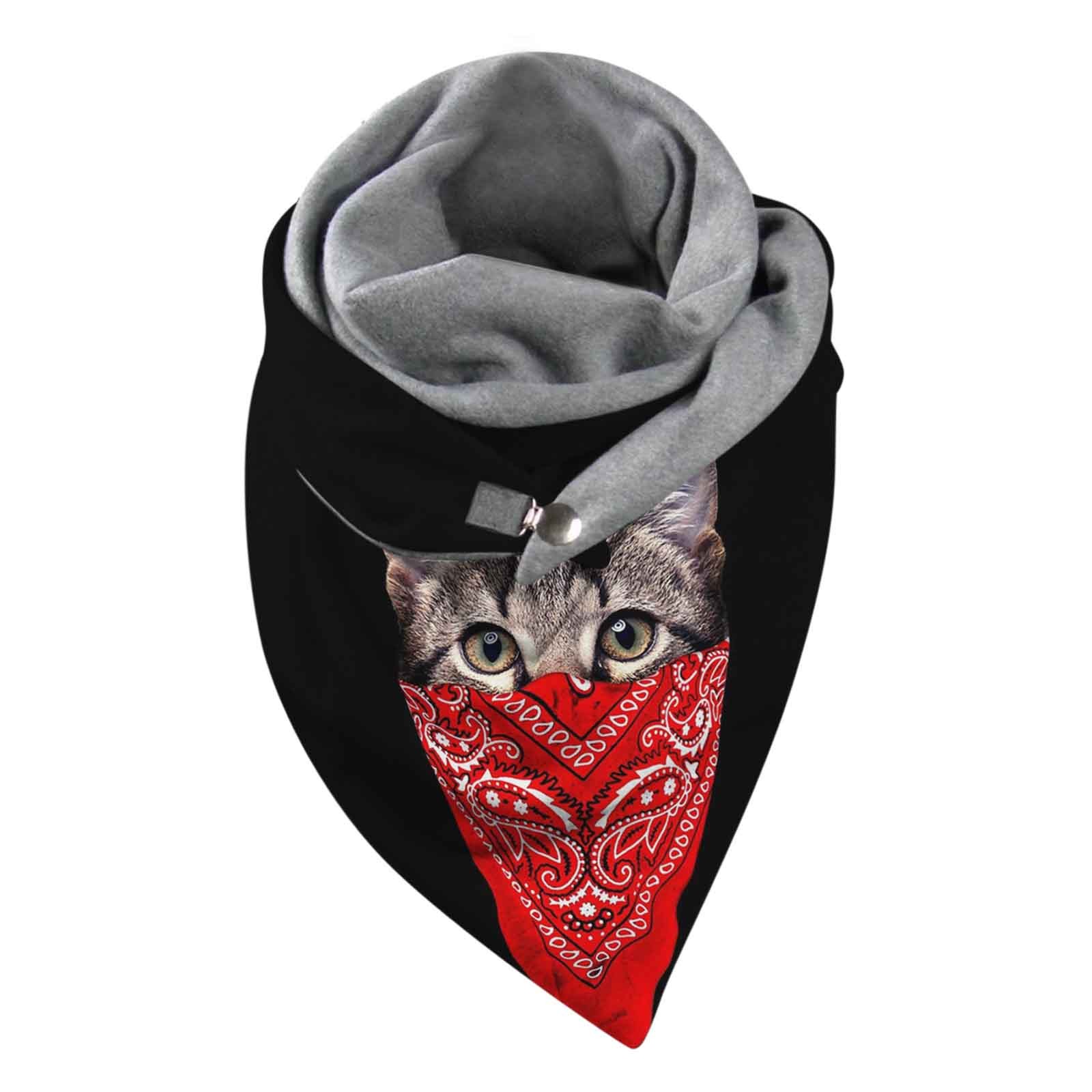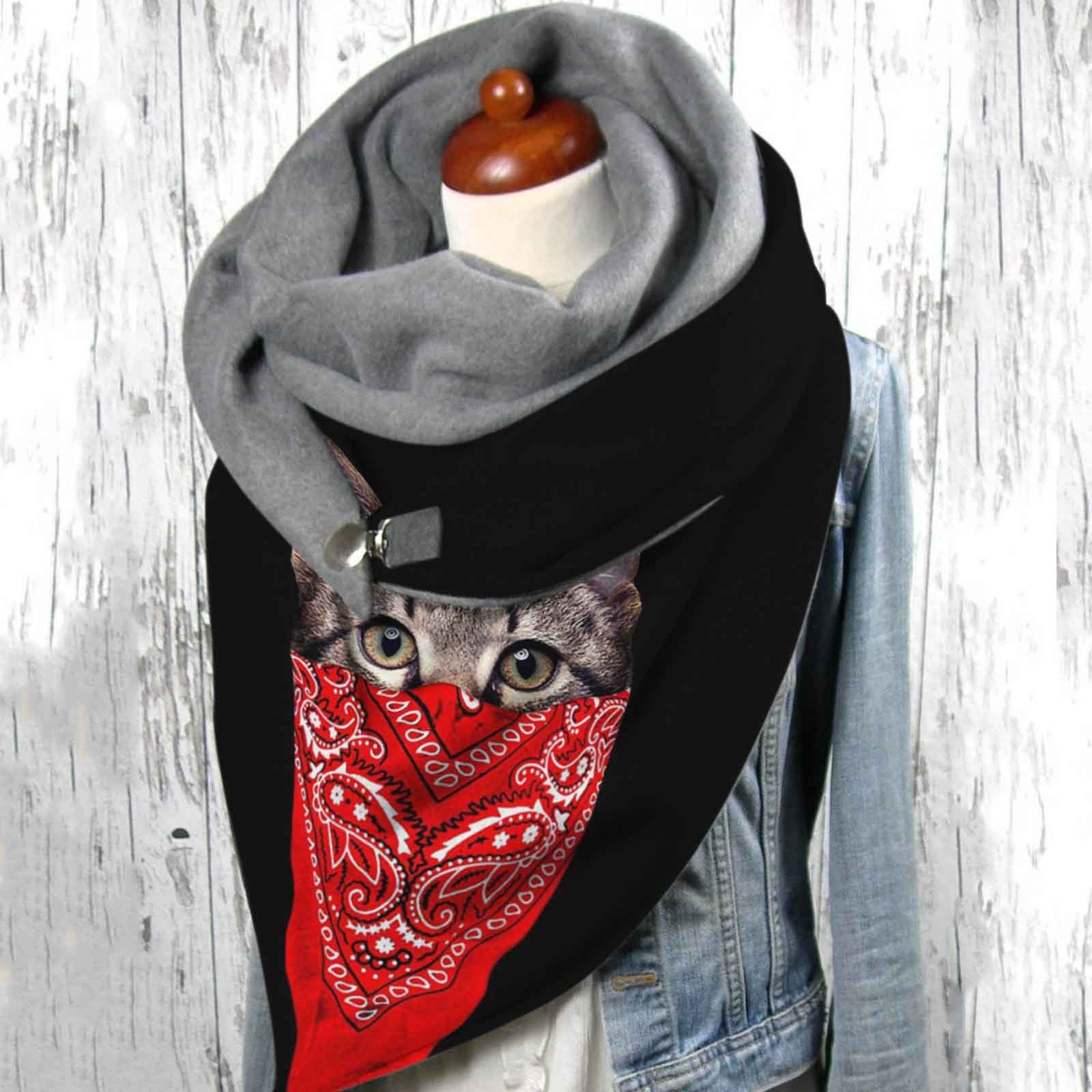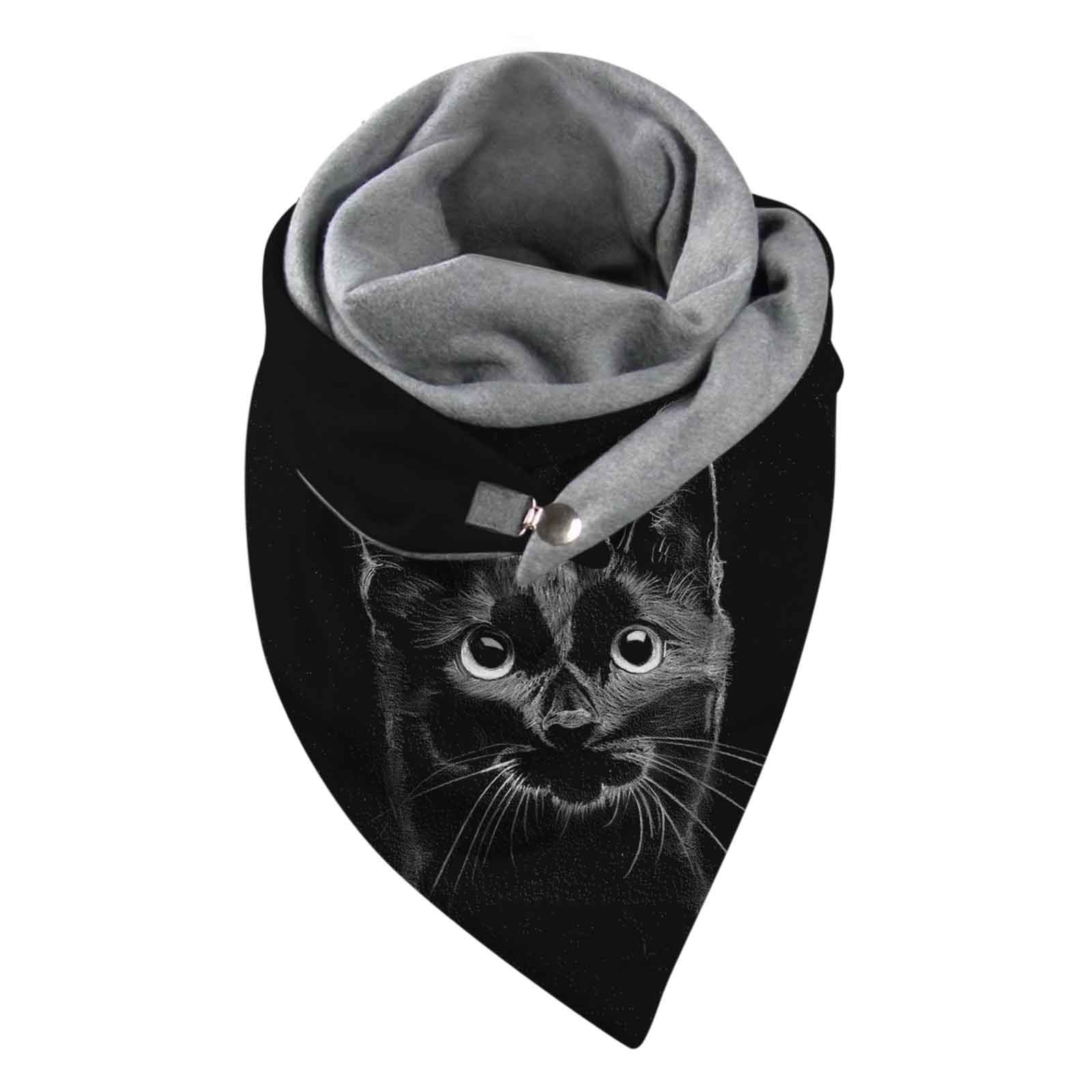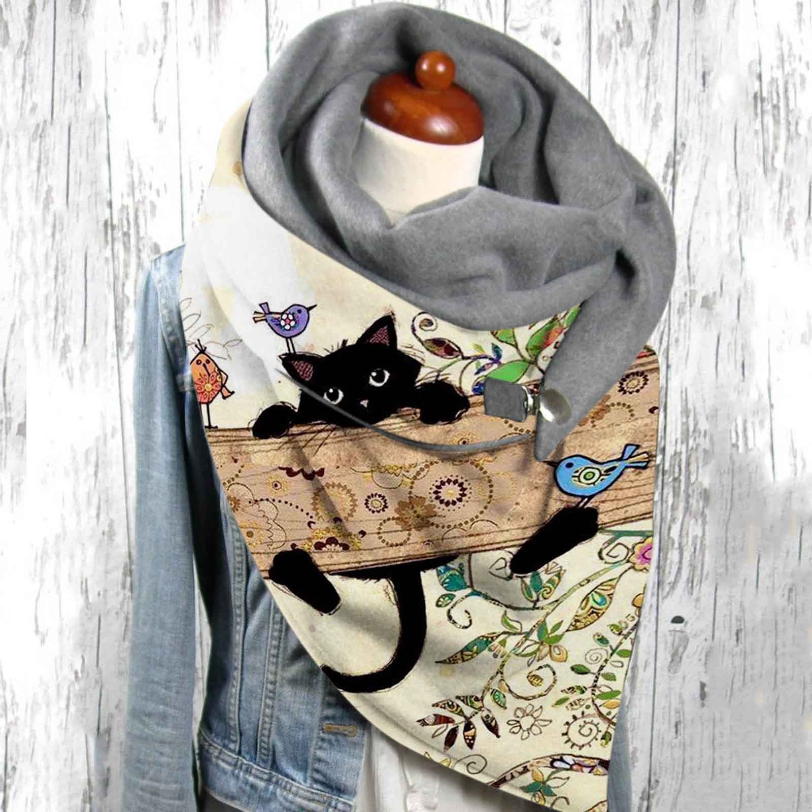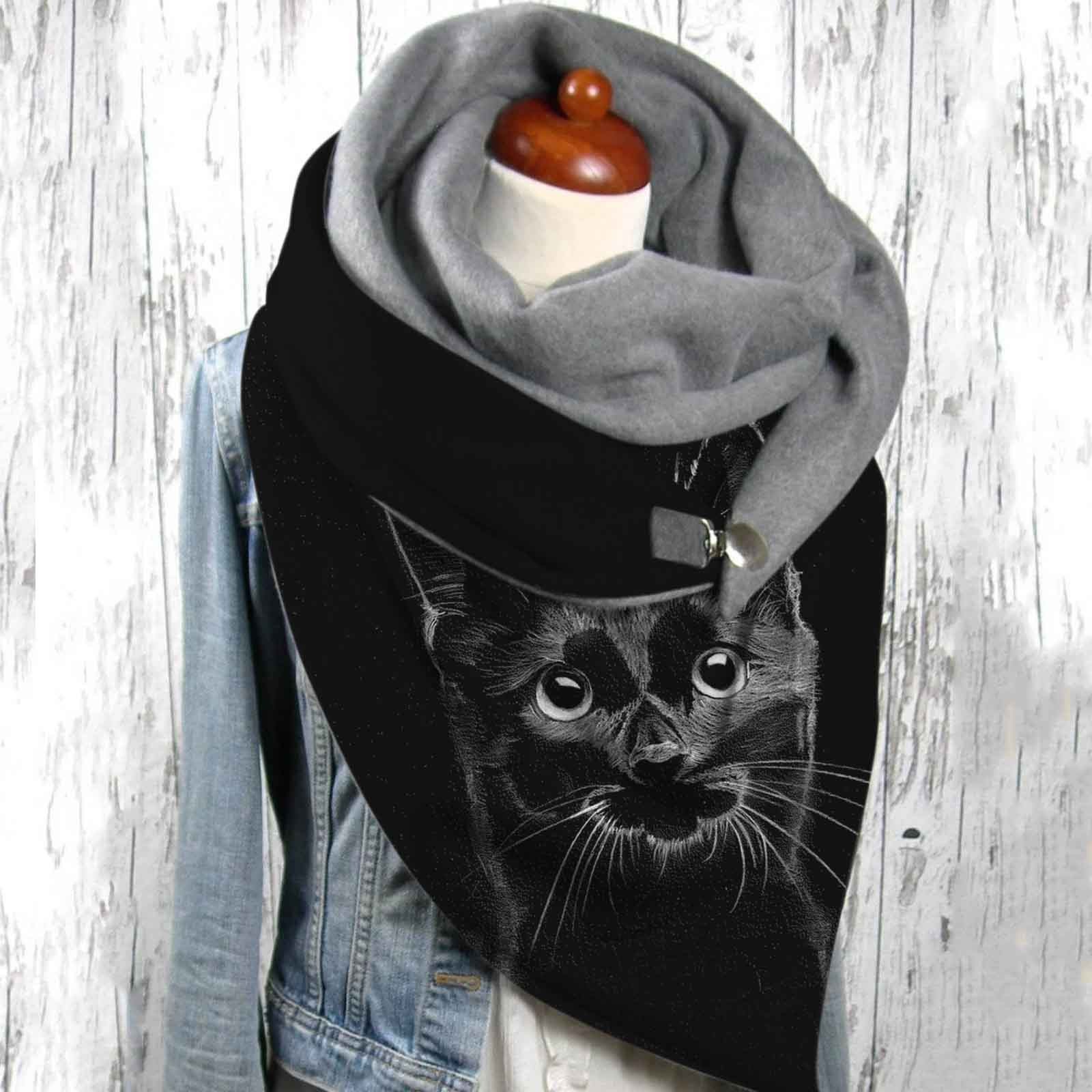Универсальный осенне-зимний теплый двухслойный мягкий удобный шарф с принтом кошки