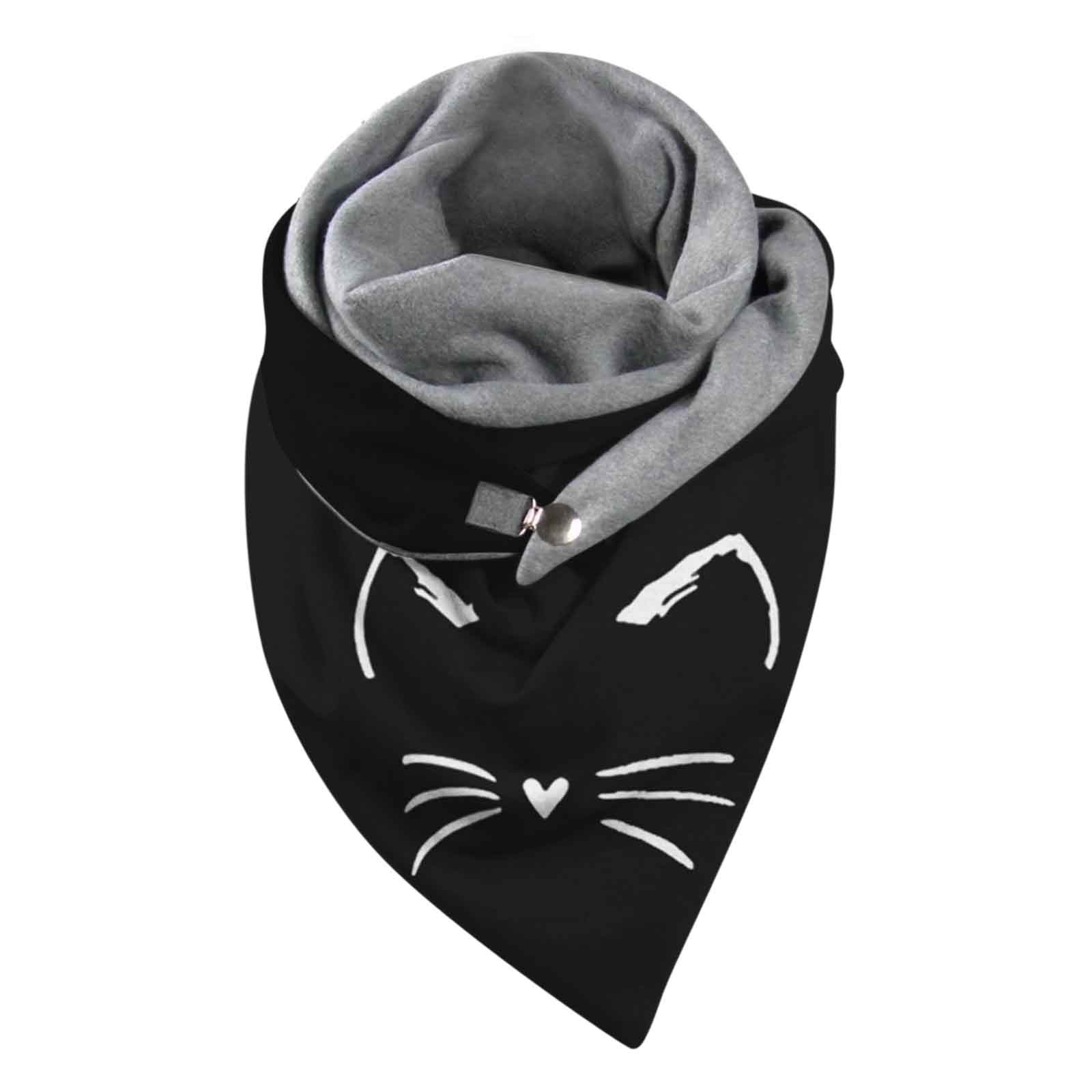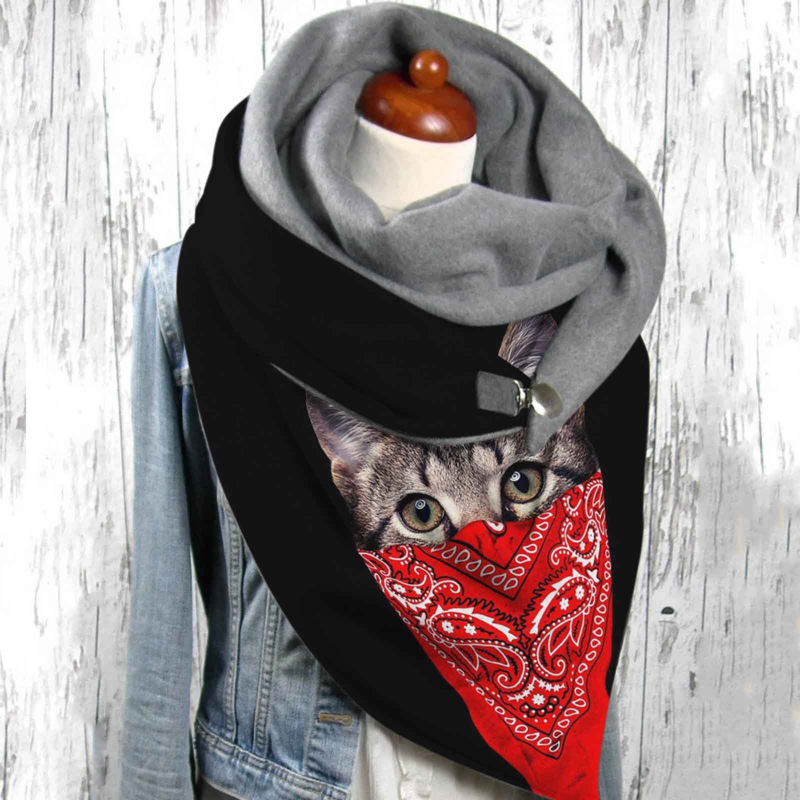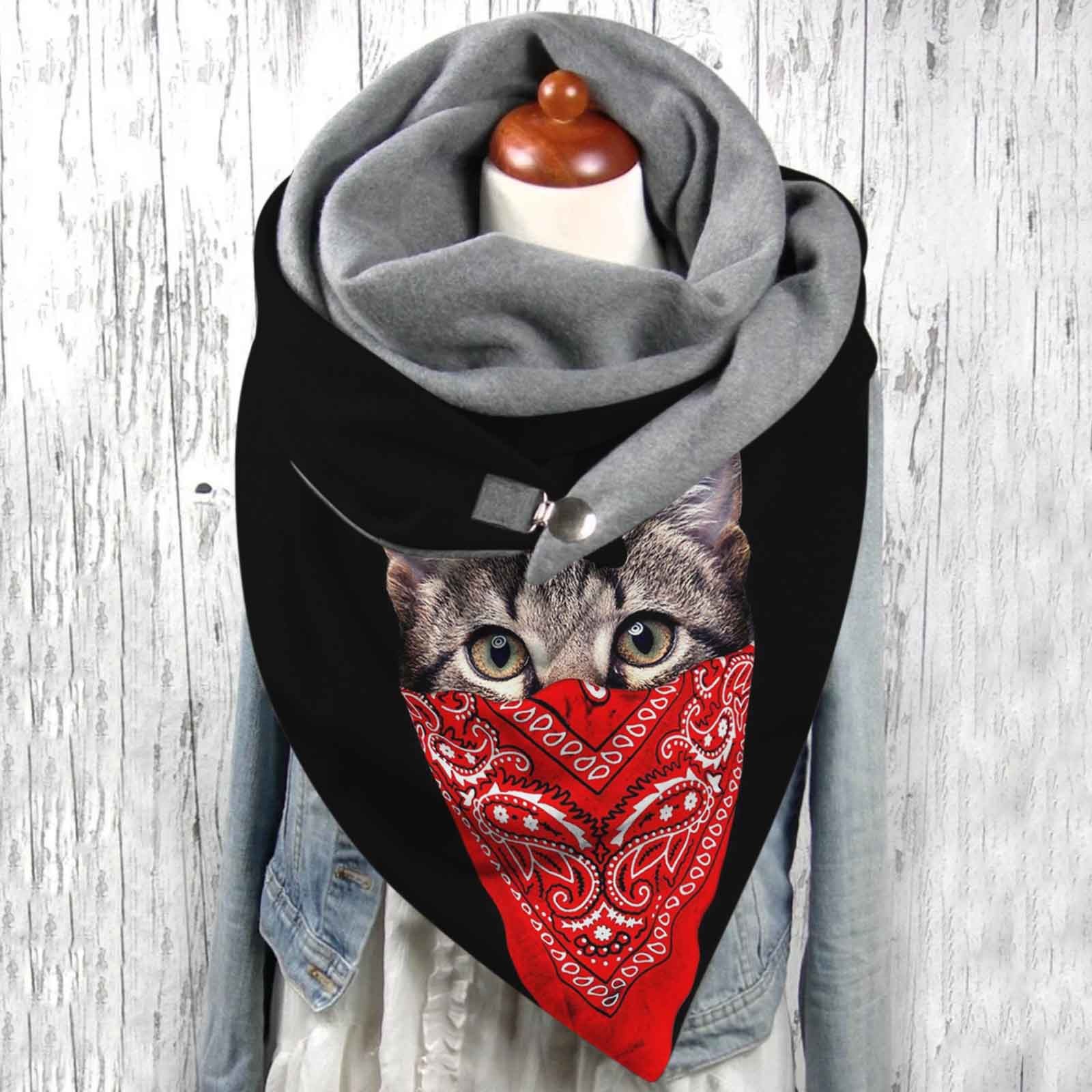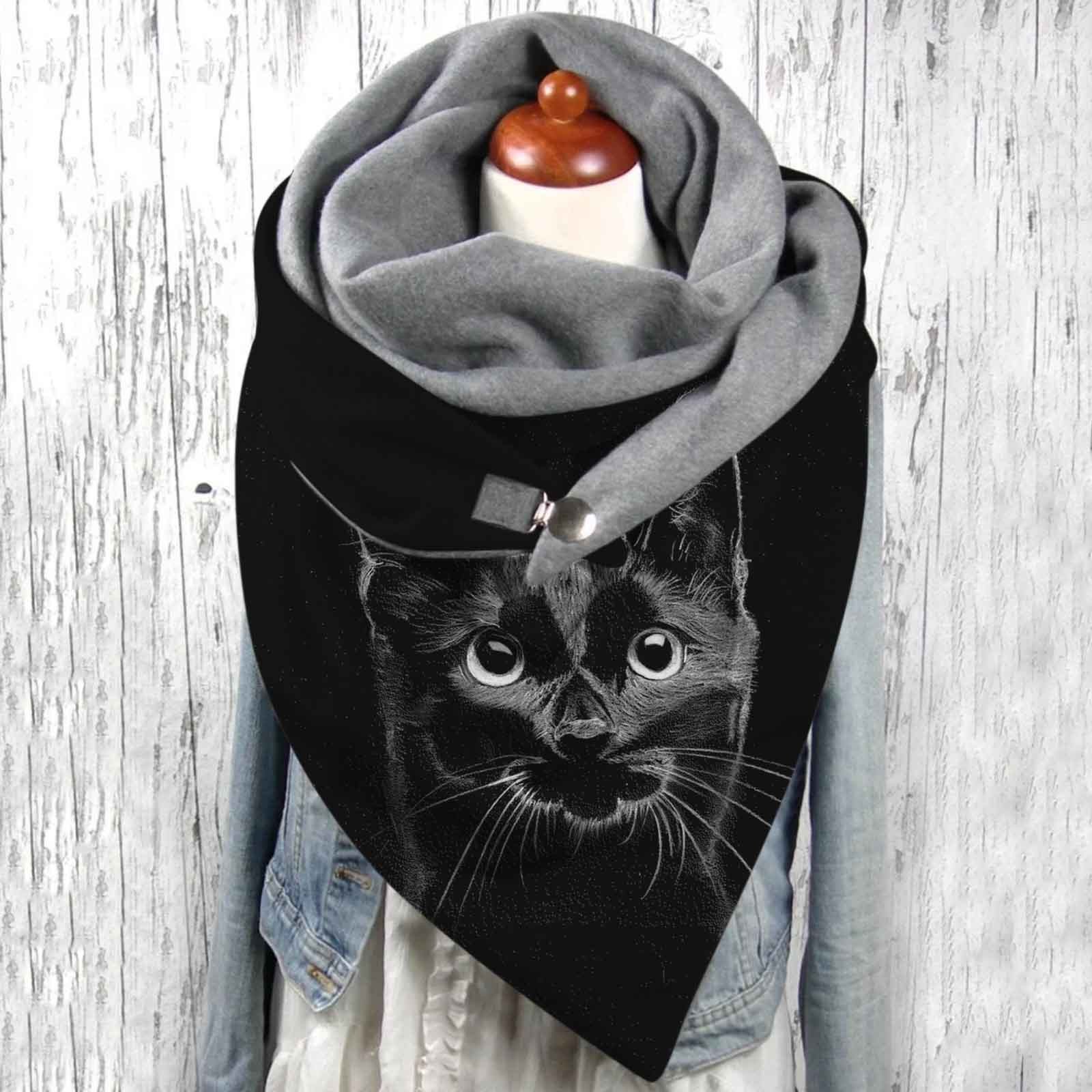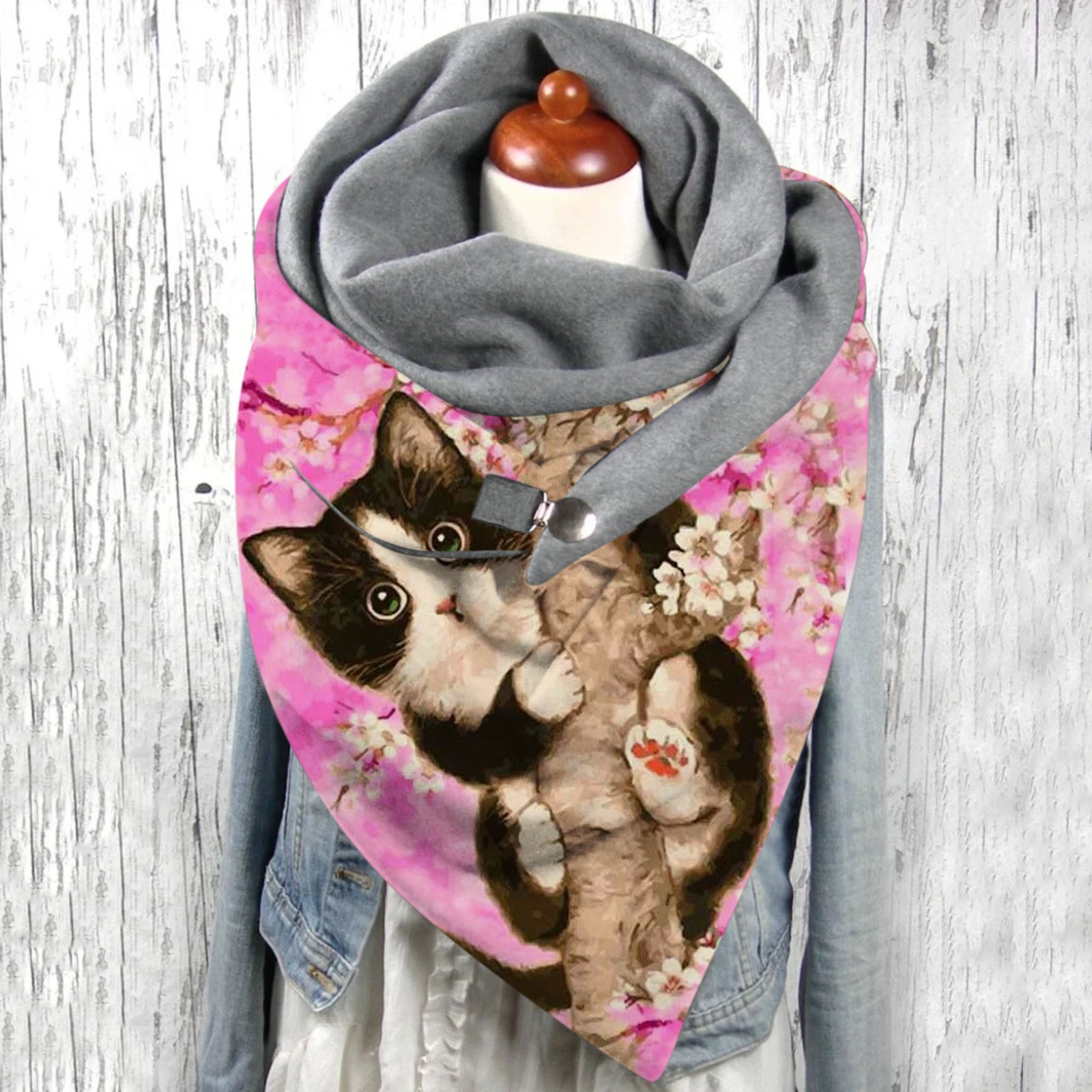 Универсальный осенне-зимний теплый двухслойный мягкий удобный шарф с принтом кошки