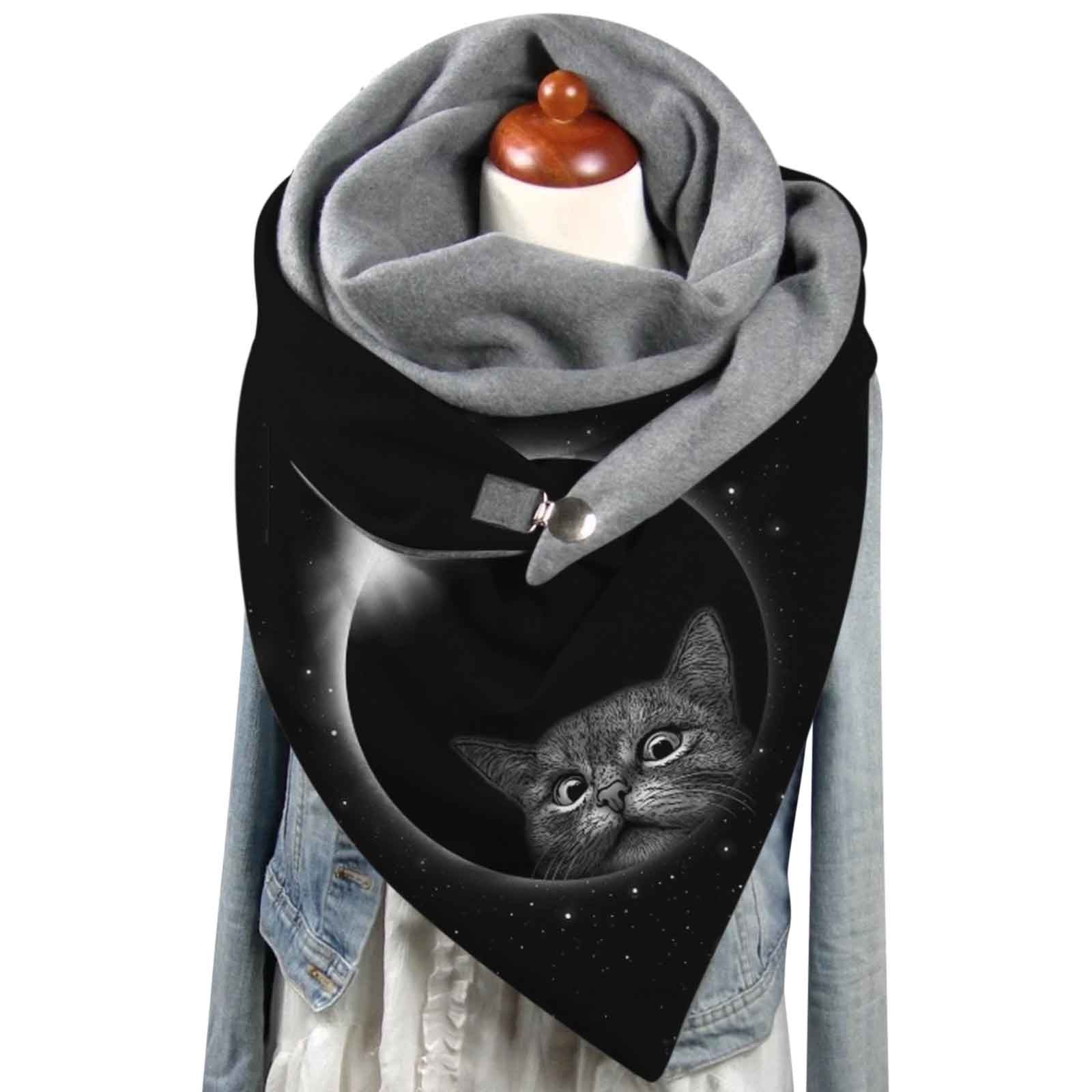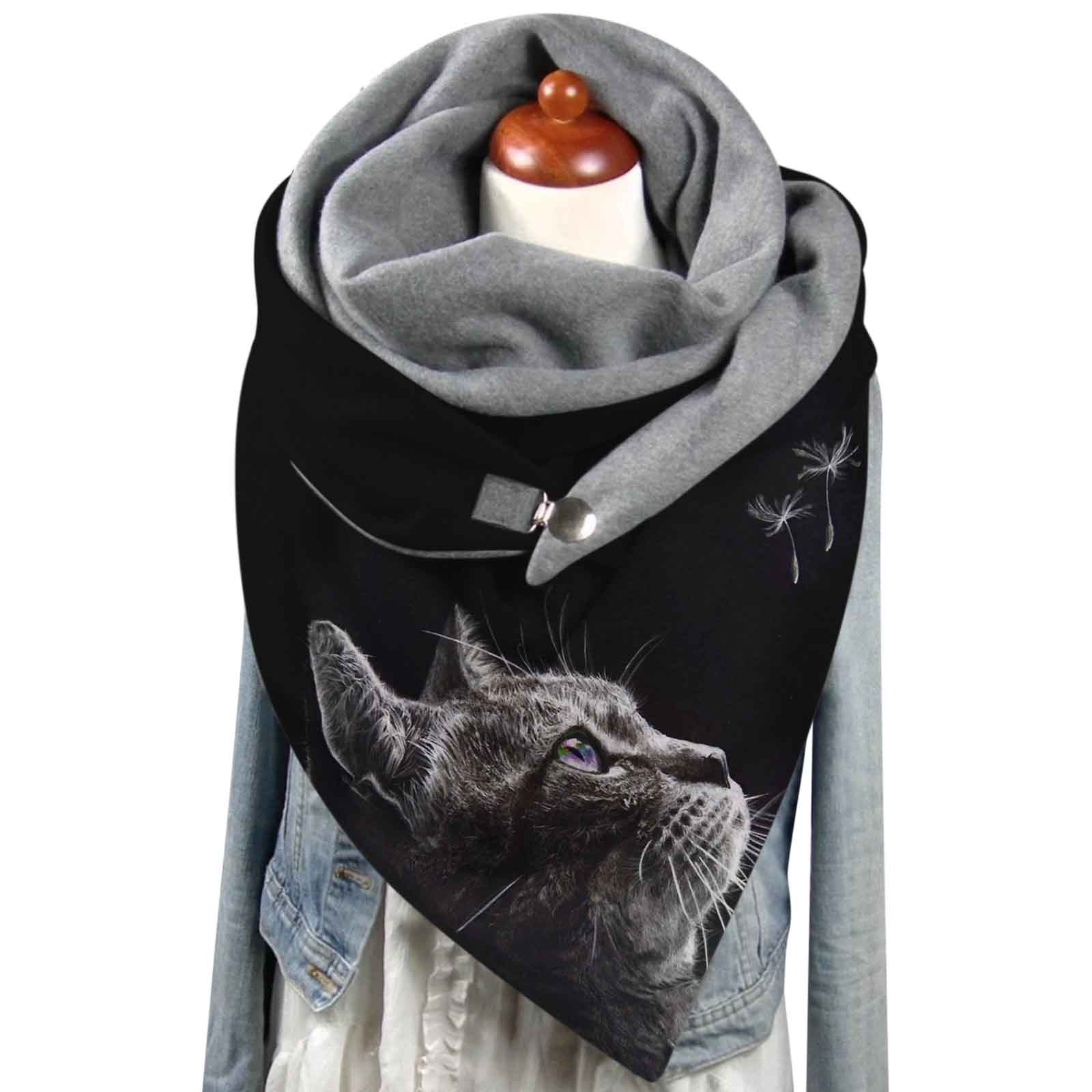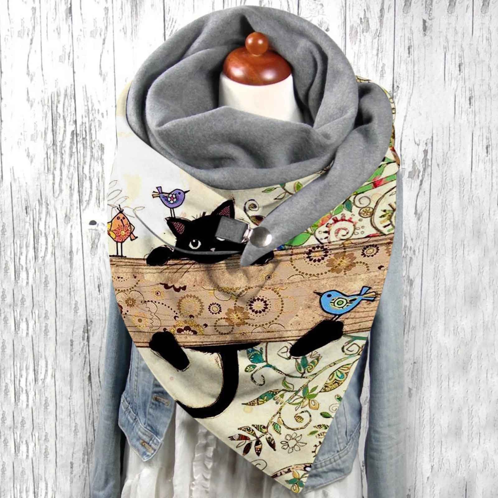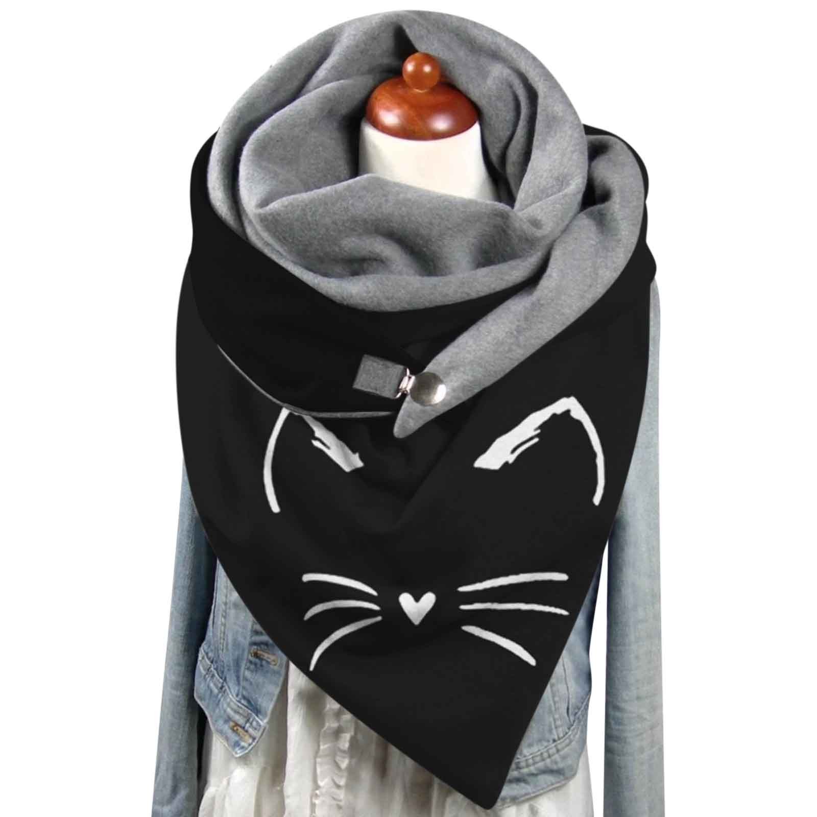 Универсальный осенне-зимний теплый двухслойный мягкий удобный шарф с принтом кошки