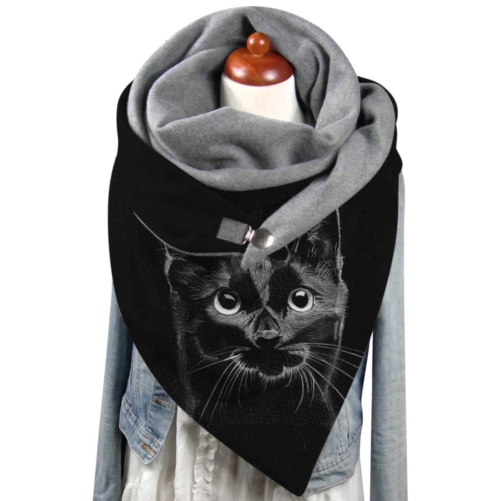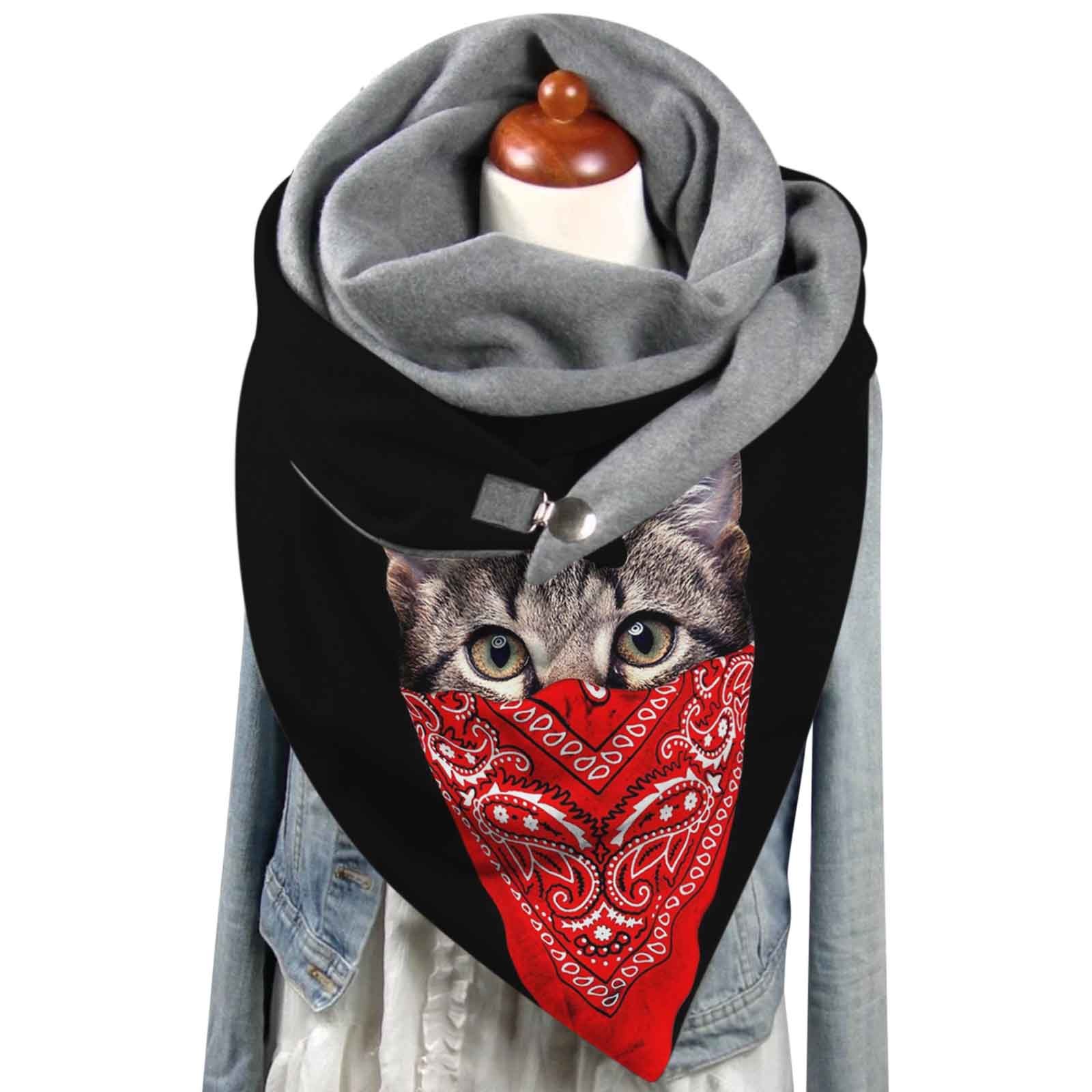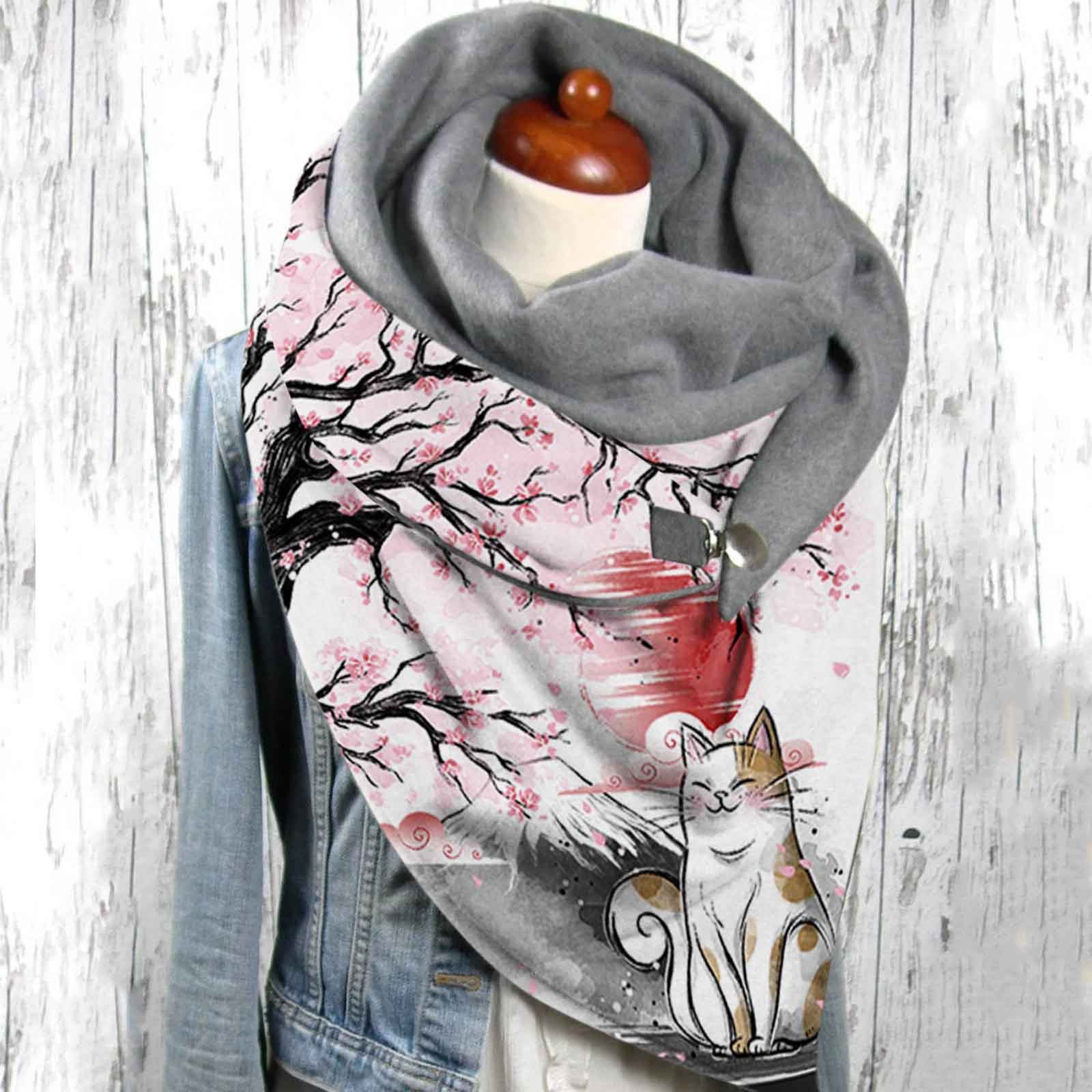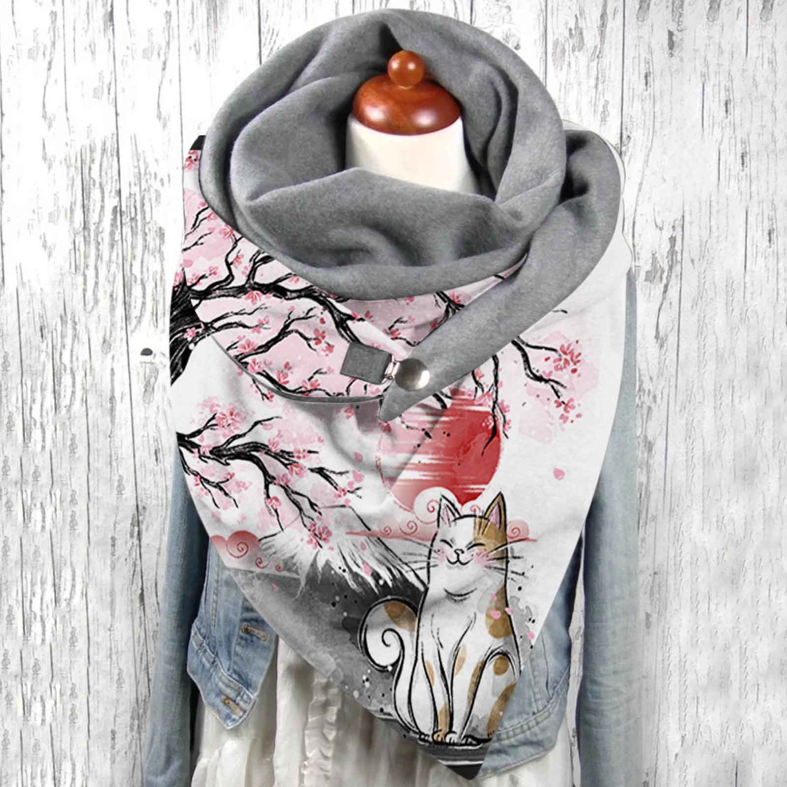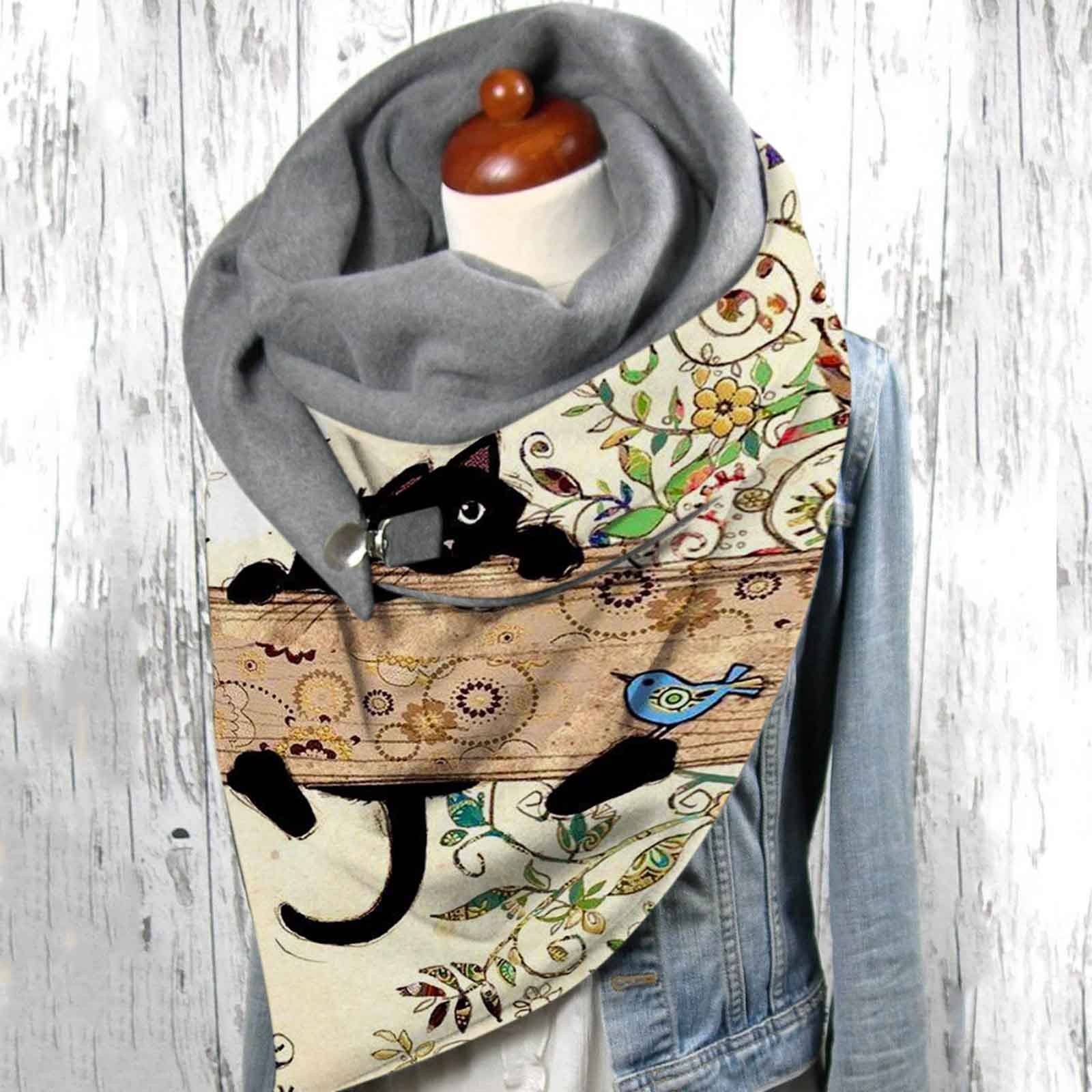 Универсальный осенне-зимний теплый двухслойный мягкий удобный шарф с принтом кошки