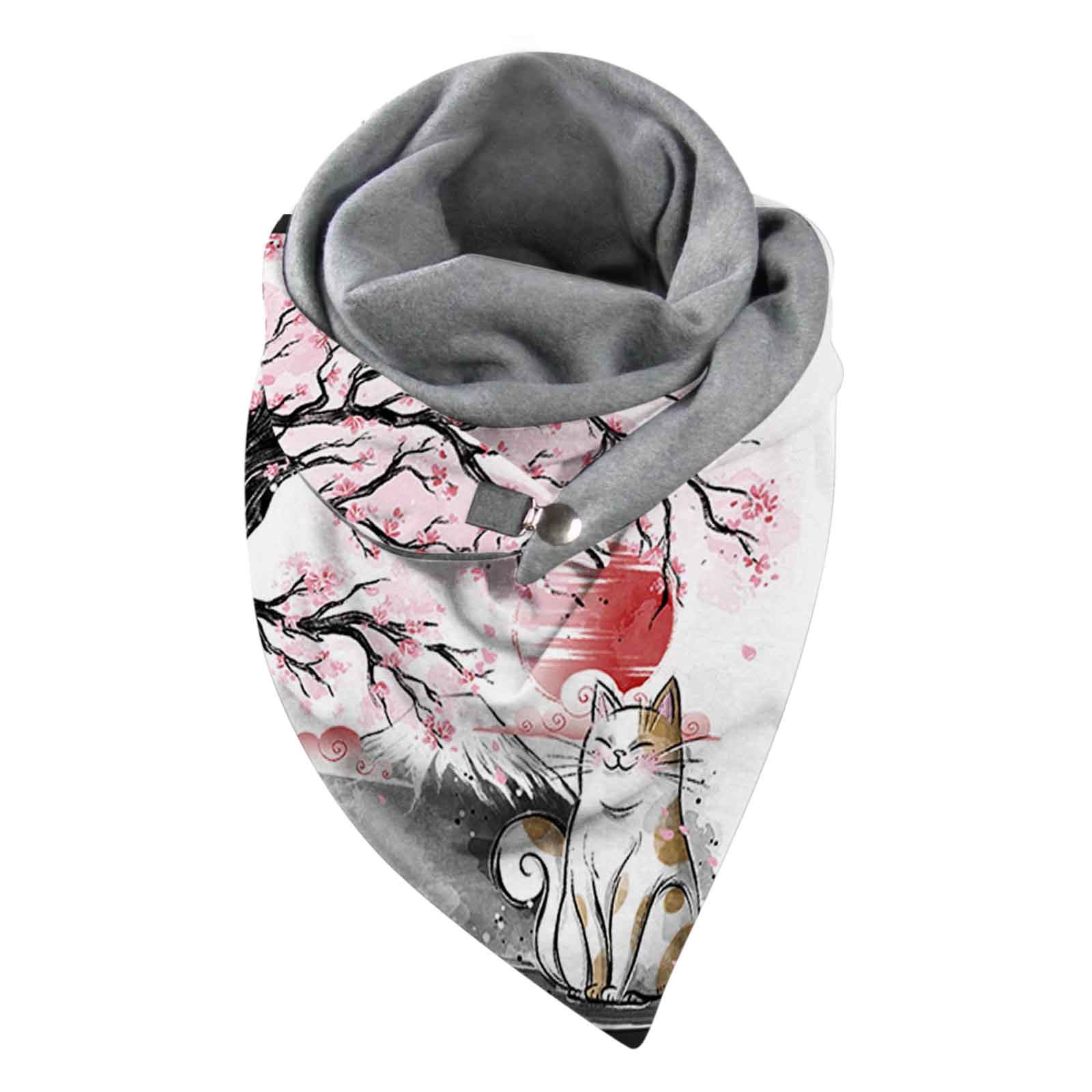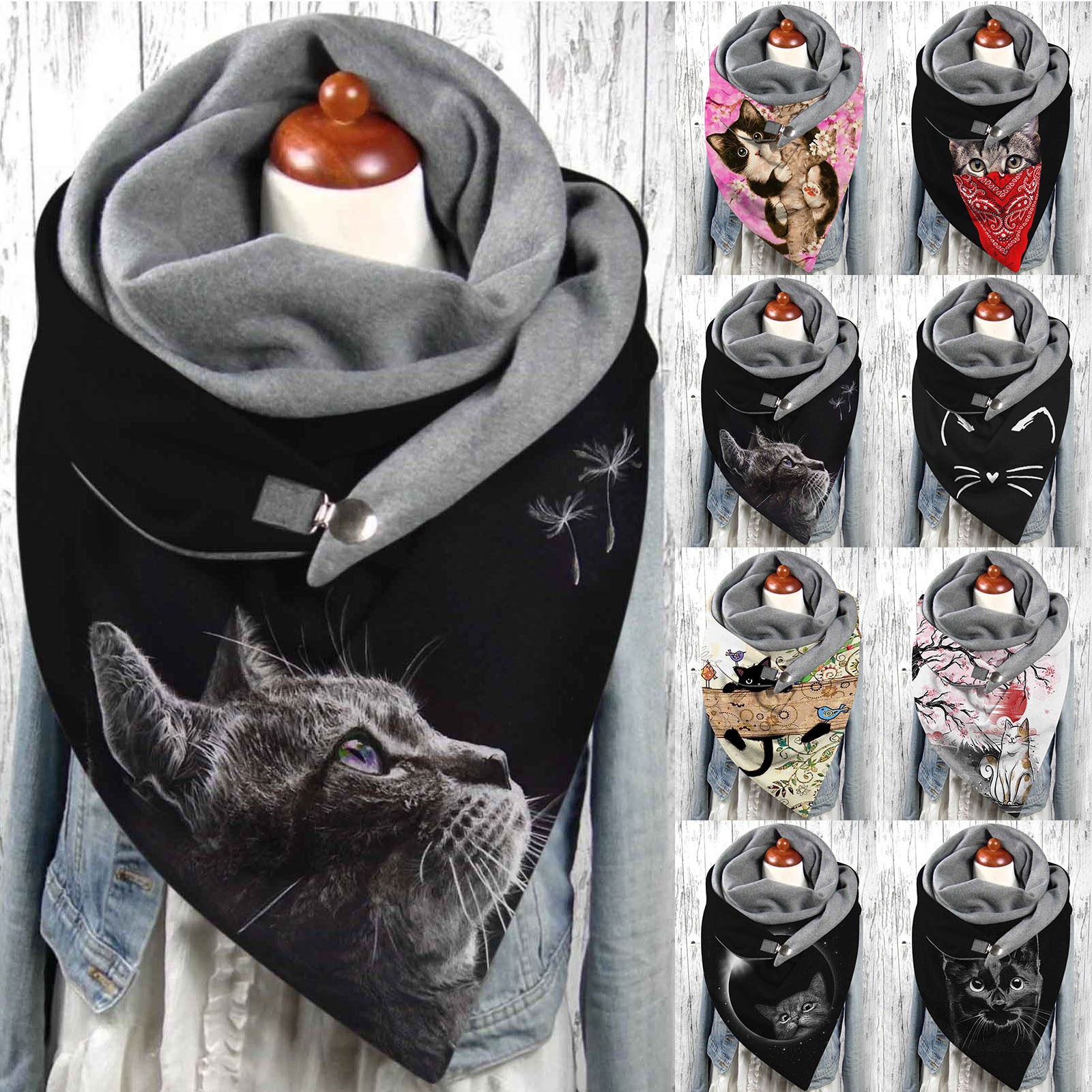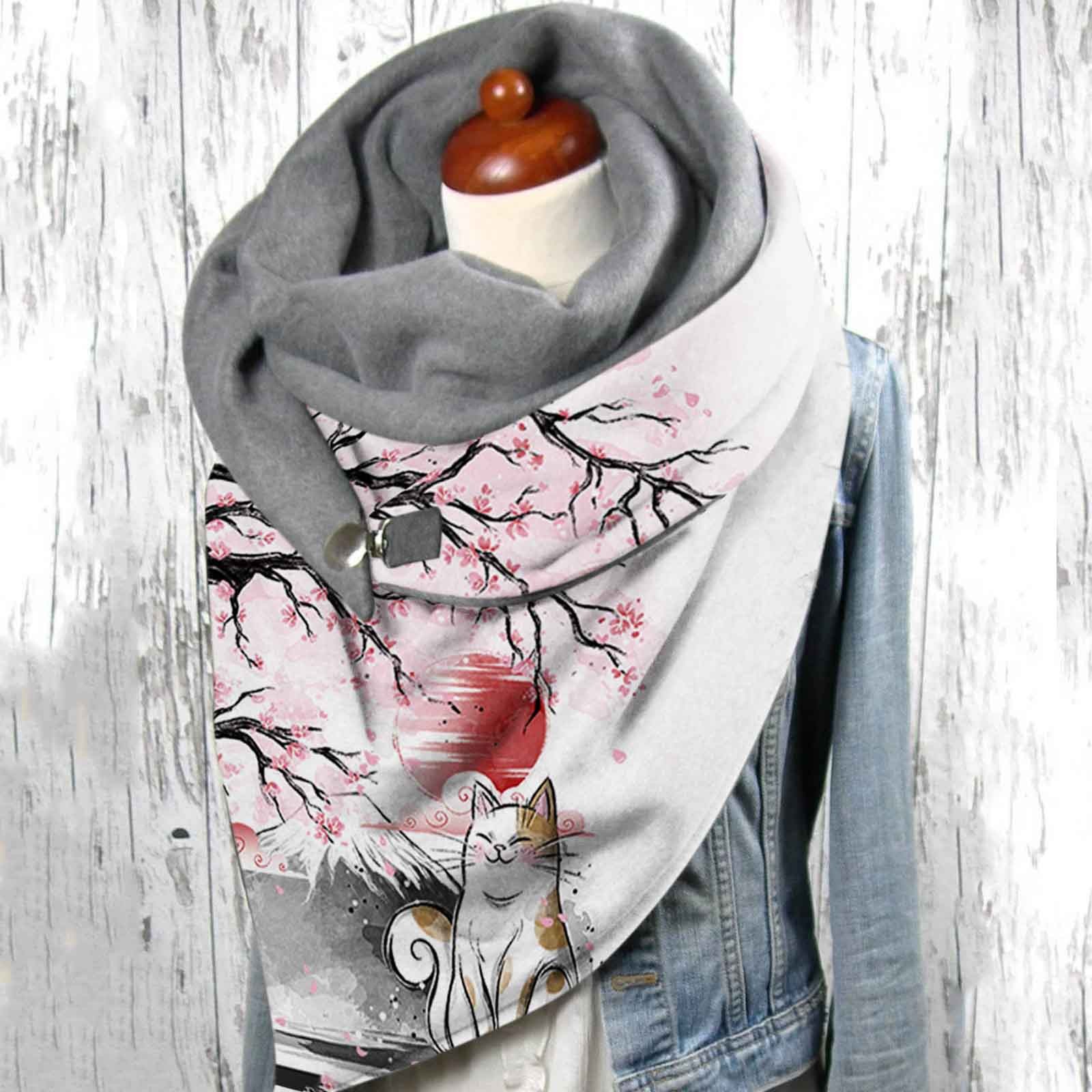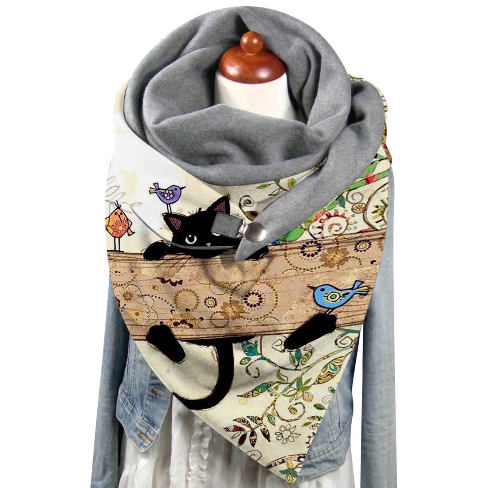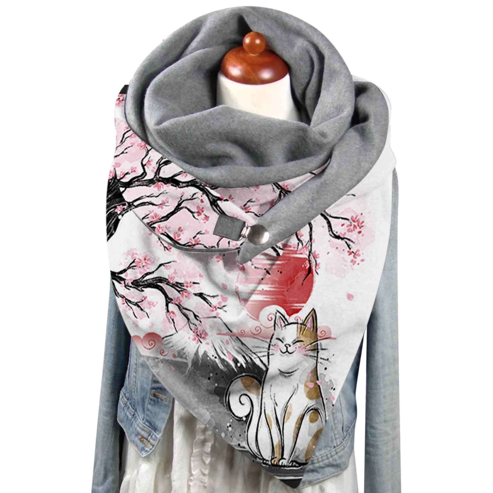Универсальный осенне-зимний теплый двухслойный мягкий удобный шарф с принтом кошки