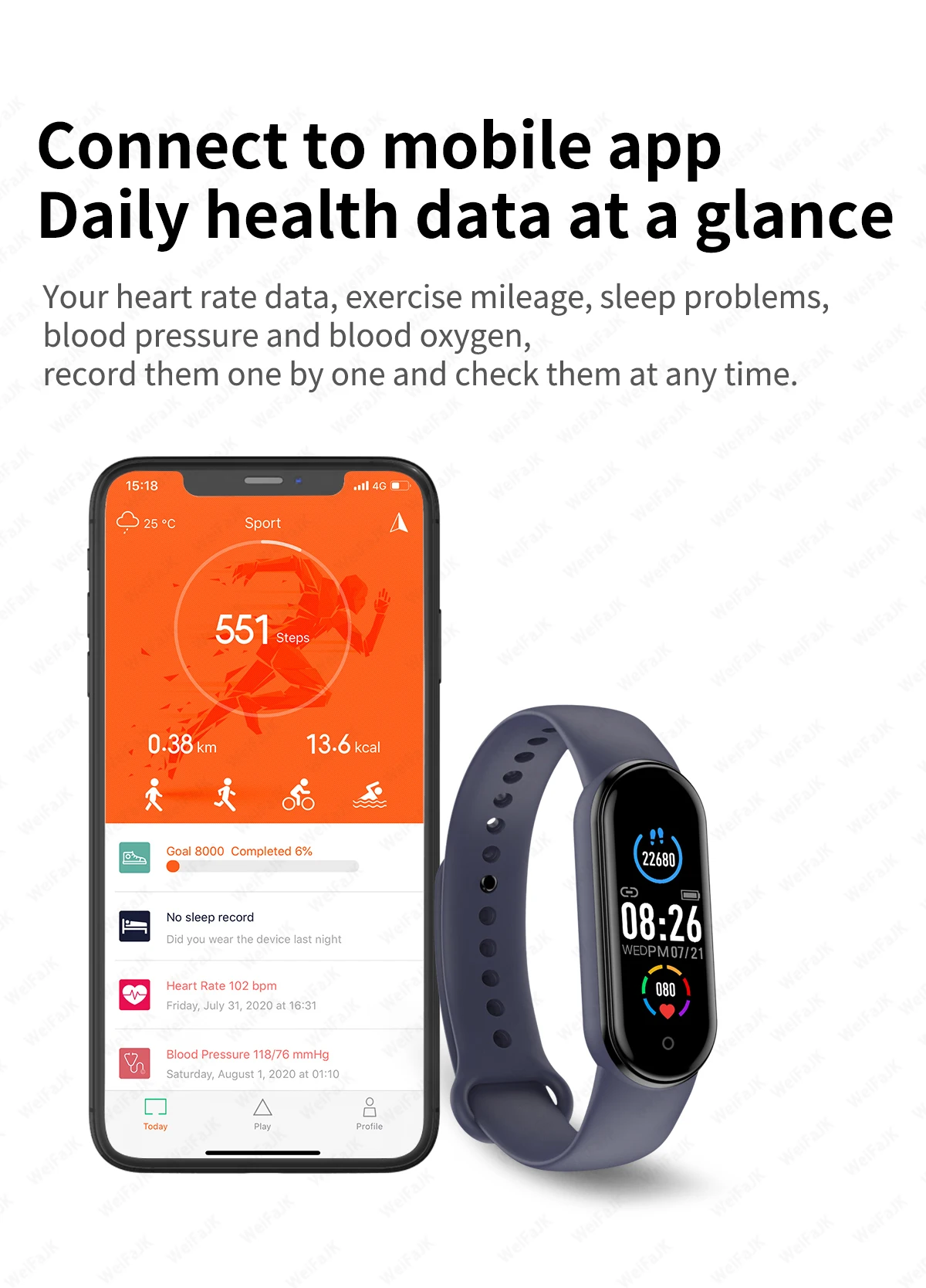 Смарт-браслет M6 6 для мужчин и женщин, фитнес-браслет, пульсометр, кровяное давление, умные часы, спортивные водонепроницаемые, шагомер, мой браслет 6