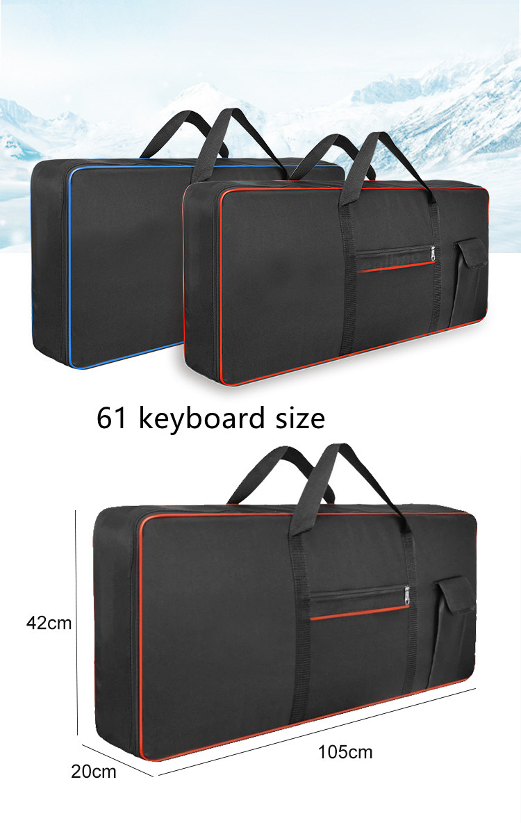 Сумка для клавиатуры изготовлена из прочного и легкого водонепроницаемого материала из ткани Оксфорд, который поможет защитить клавиатуру от воды. Мягкая внутренняя ткань может защитить вашу электронную клавиатуру от царапин и пыли. Дизайн с двумя карманами дает вам больше места для хранения компонентов клавиатуры и учебников, а эргономичная ручка удобна для переноски, практична и стильная.