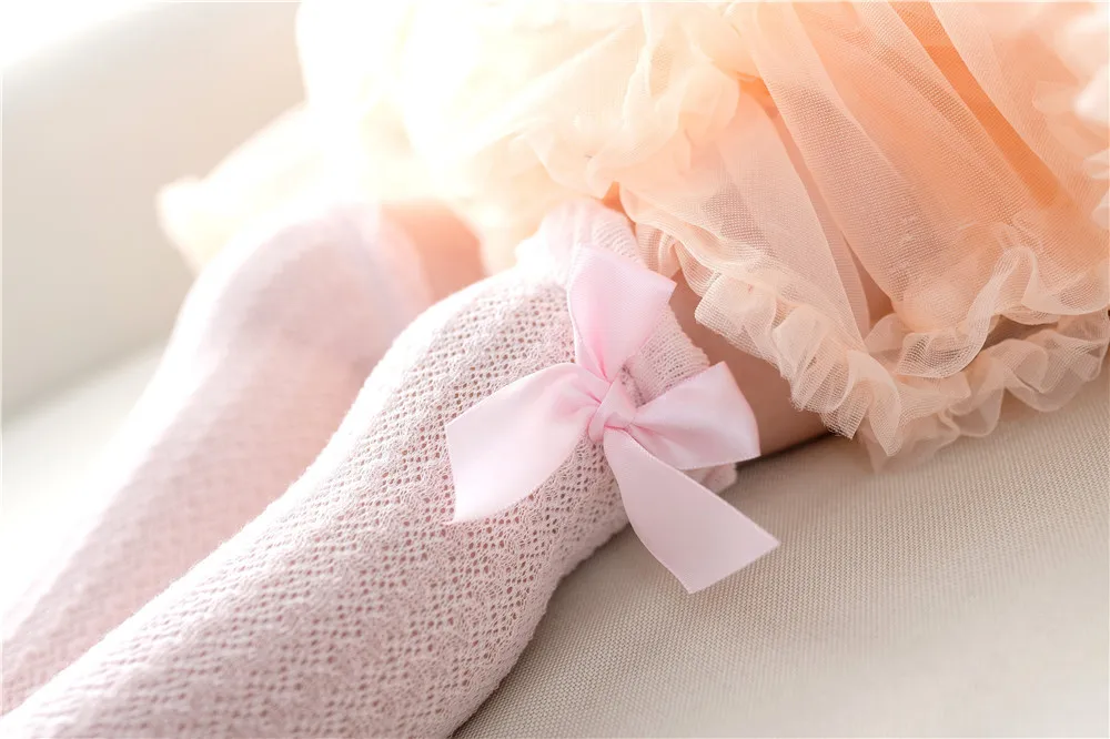 Гольфы для маленьких девочек летние носки принцессы в испанском стиле с большим бантом для маленьких девочек сетчатые ребристые носки хлопковые гольфы, подарок для детей
