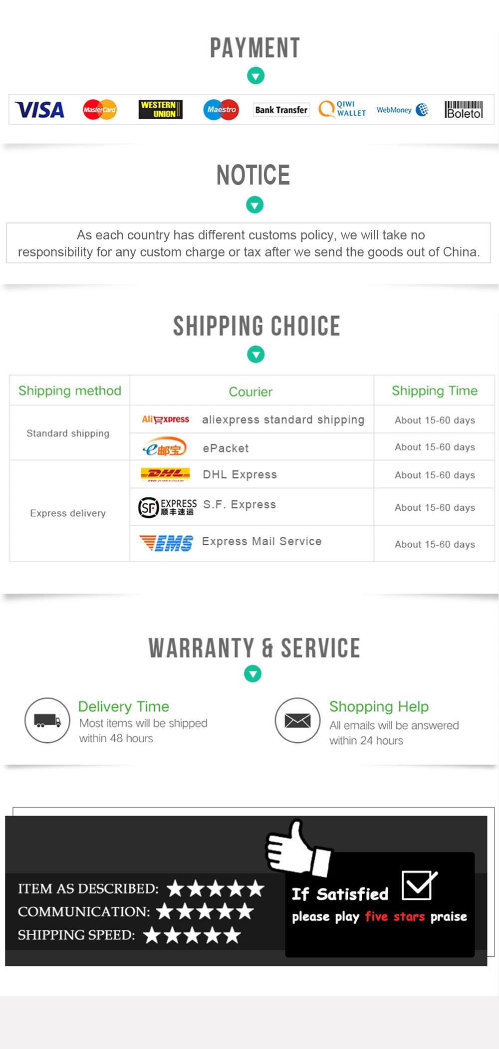 3. Скидка более 5 комплектов. Для большего количества заказа, вы можете отправить нам сообщение
