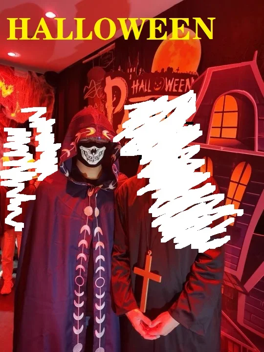 Плащ унисекс с капюшоном может сочетаться с повседневным костюмом, тонким высоким каблуком и шикарным ожерельем в качестве костюма для Хэллоуина.