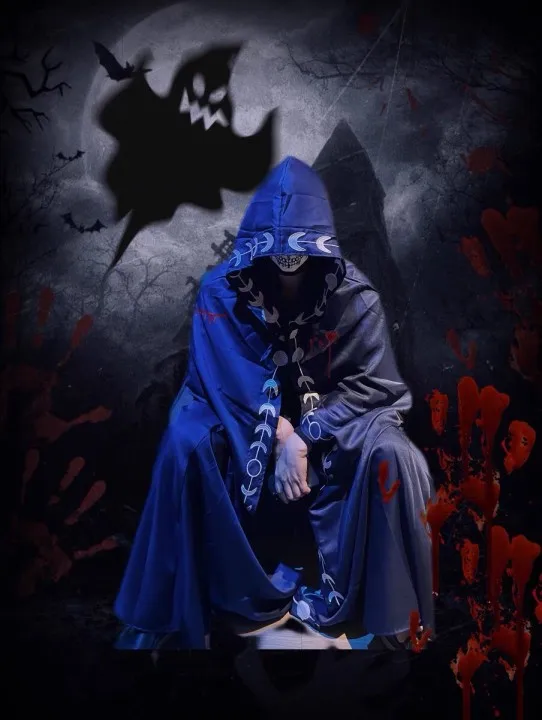 С капюшоном, очень длинным, со шнуровкой и принтом Луны, плащ для взрослых на Хэллоуин поможет вам быть наиболее заметными в вечерние.