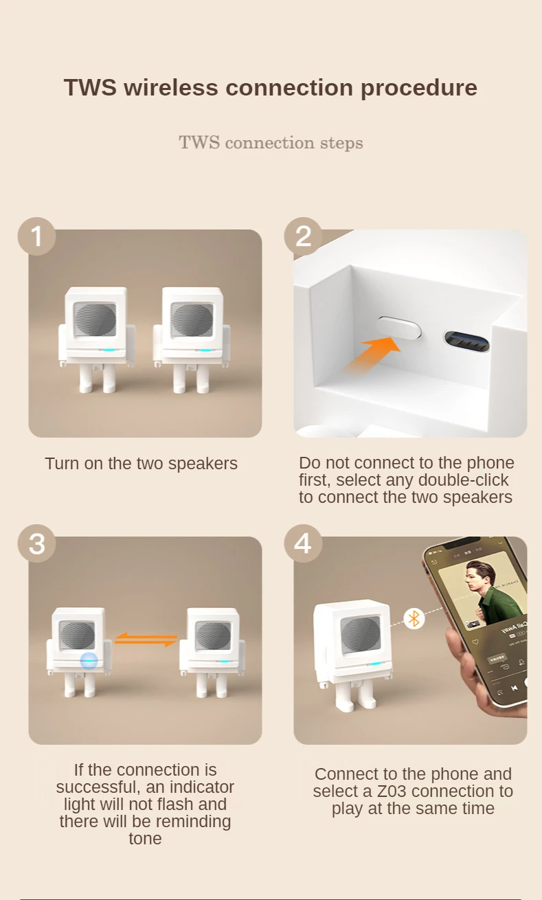 1. Две машины TWS беспроводное подключение в серии, наслаждайтесь панорамными звуковыми эффектами 360 °.