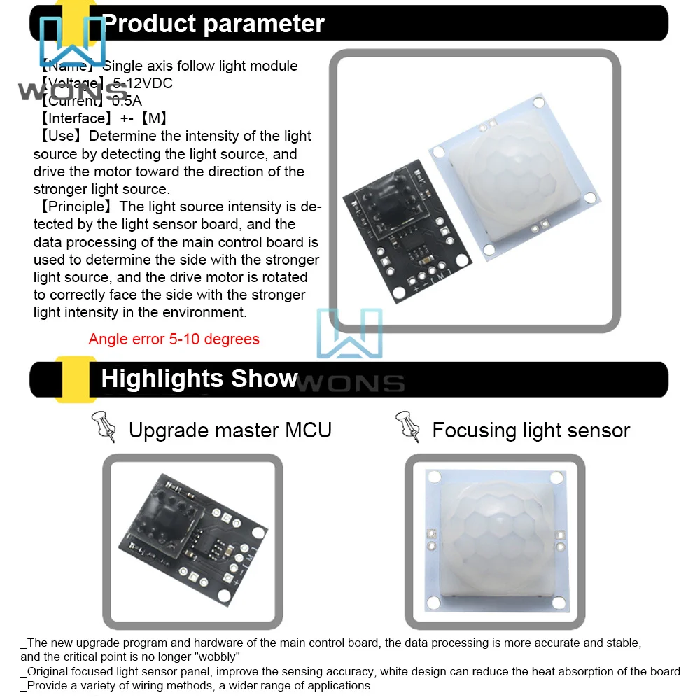 [Принцип]: светильник источник интенсивность будет обнаружен в светильник сенсорная доска, а также обработки данных Главного управления используется для того, чтобы определить стороне обеспечивают работу в более сильный свет светильник источник, И приводной двигатель вращается правильно лицевая сторона с более сильный свет светильник интенсивность в окружающей среде.