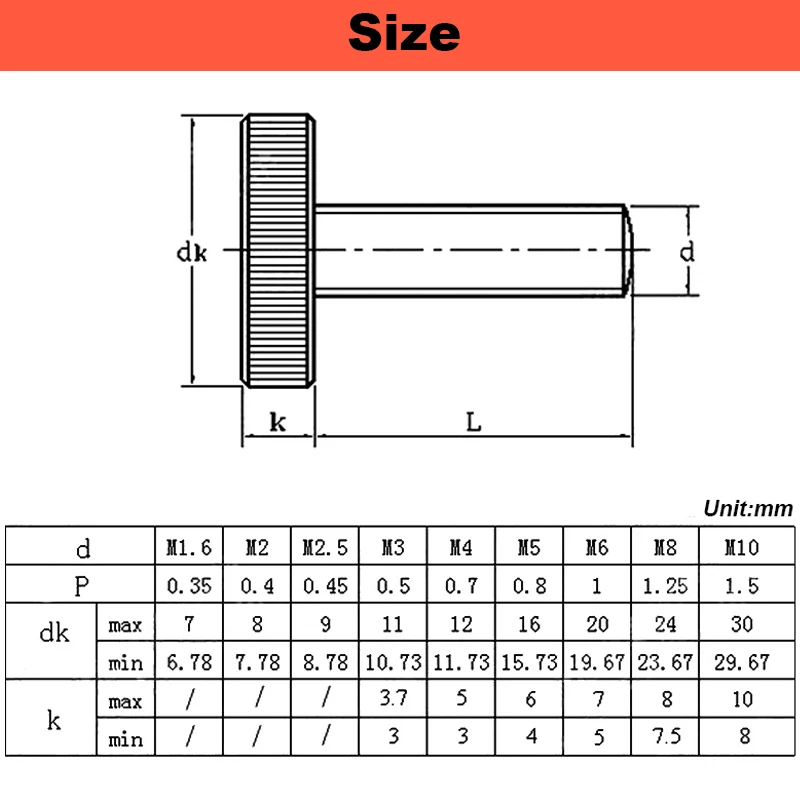 Size: Thread Diameter (M) * Thread Length (L)