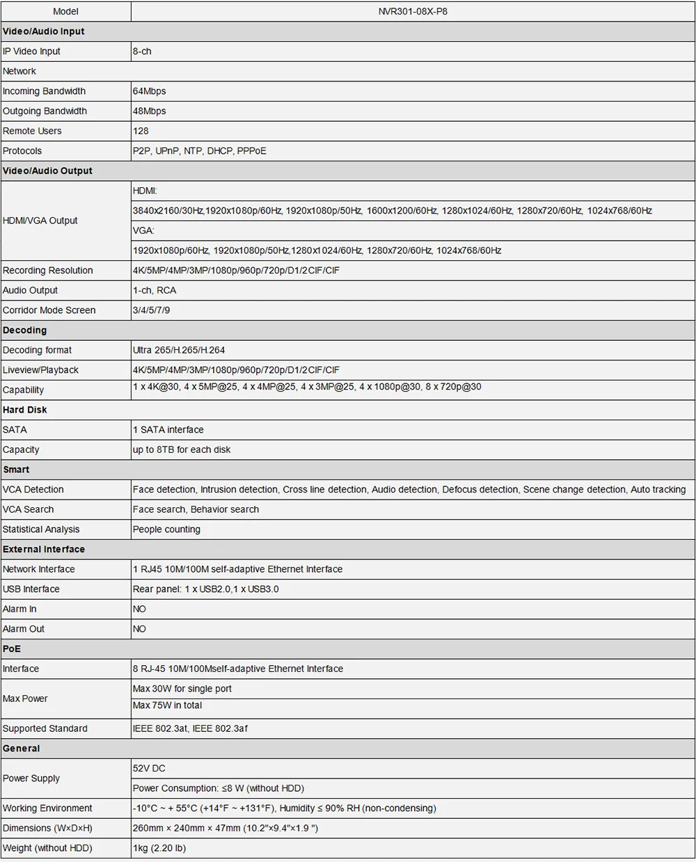 Спецификация NVR