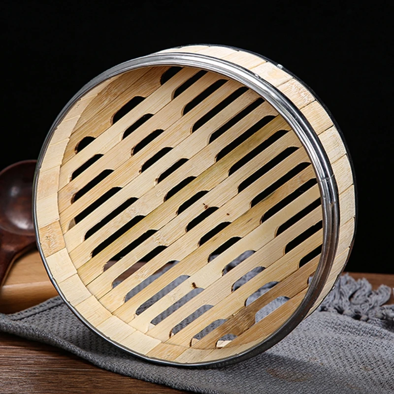 Бамбуковая Пароварка для еды, 1 шт., с окантовкой из нержавеющей стали, без крышки, корзина для приготовления пищи, пельменей, десерта, приглушенной клетки, Кухонная Плита