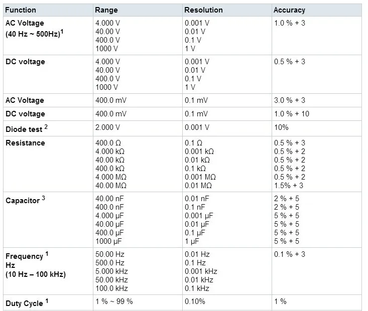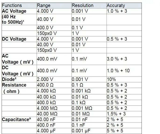 Напряжение, сопротивление, тест непрерывности, тест емкости.