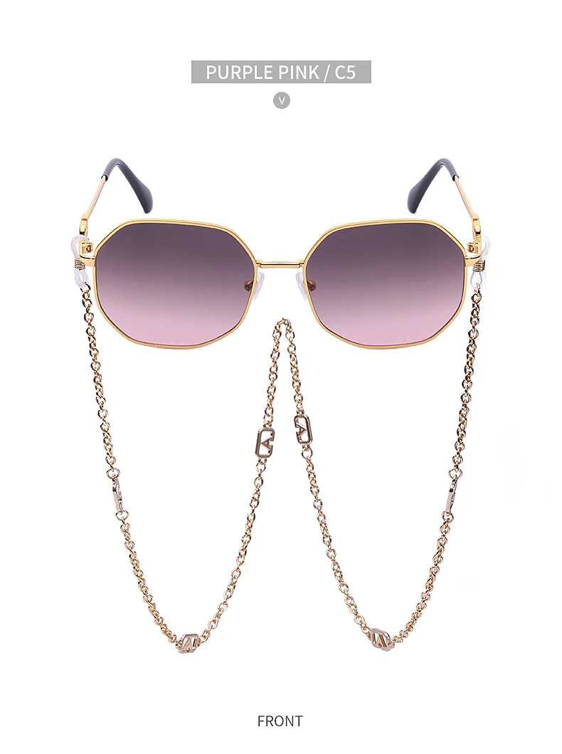 Модные уникальные многоугольные солнцезащитные очки с цепочкой, женские винтажные Ретро Классические солнцезащитные очки в оправе, роскошные брендовые дизайнерские очки с цепочкой