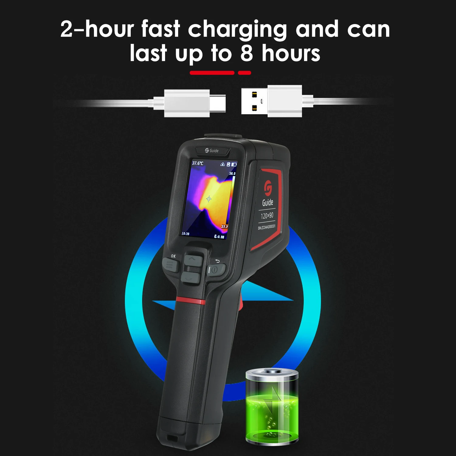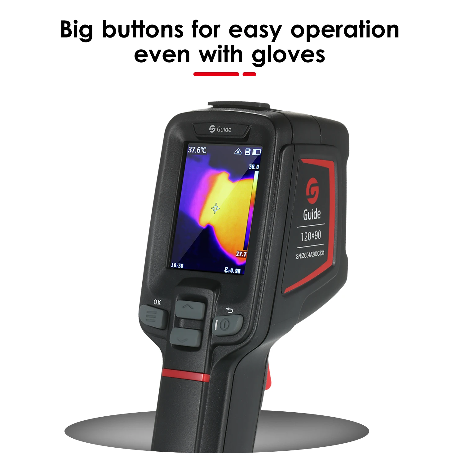 Гид T120 начального уровня тепловизионная камера является доступным инструментом для измерения температуры широко используется для диагностики зданий, проверки ОВКВ, проверки электрической системы и многое другое. Он идеально преодолевает недостатки инфракрасных термометров с одной точкой и помогает работать умнее, безопаснее и быстрее. Оснащенный саморазработанными ИК-модулями 120x90 WLP Guide, он может мгновенно отображать радиометрические данные на 10800 пикселей, что помогает быстро обнаруживать большие области и точно определить точки неисправности. Он также может легко сохранять изображения и данные и быстро загружать через usb-кабель.