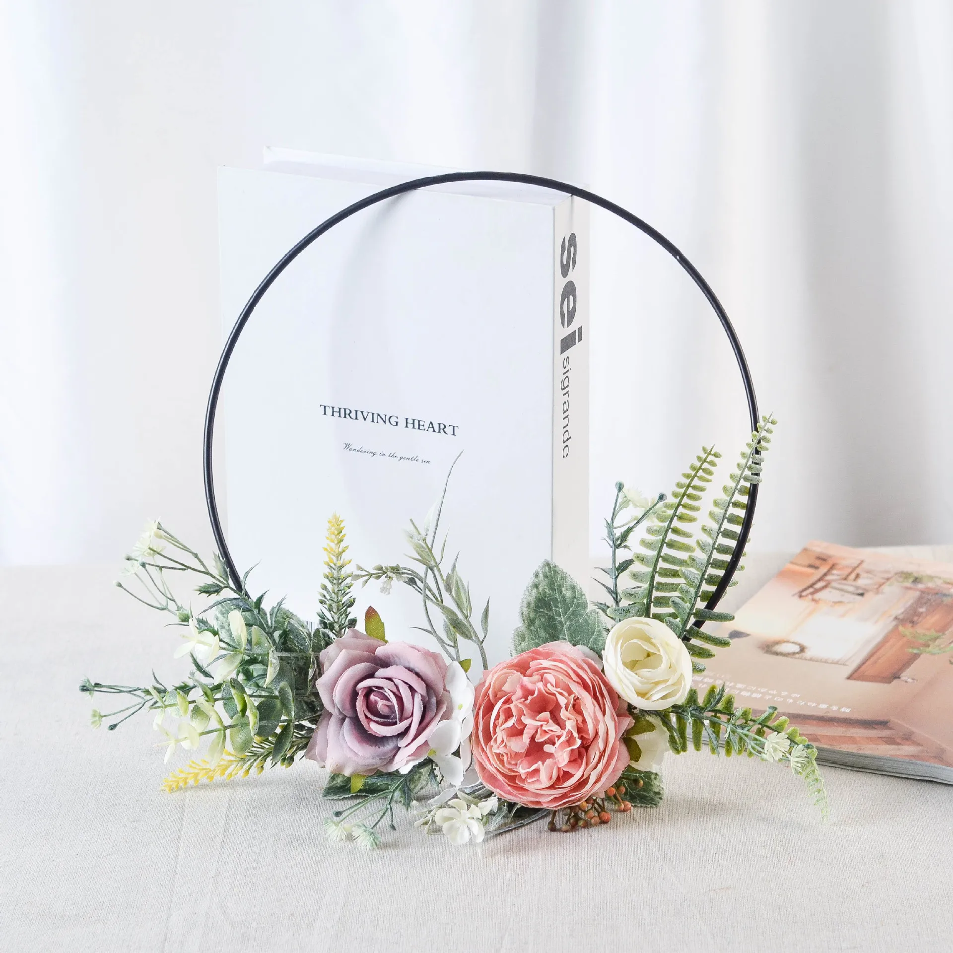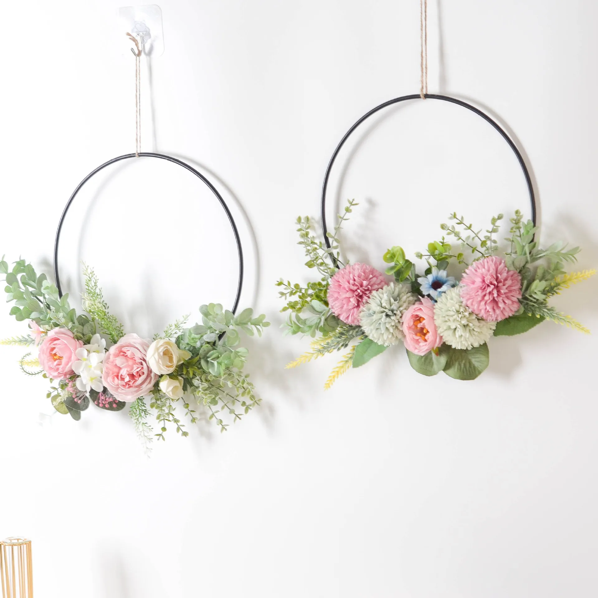 Искусственный цветок гортензии настенный венок черный металлический железное кольцо гирлянда окна двери подвесные Свадебные украшения