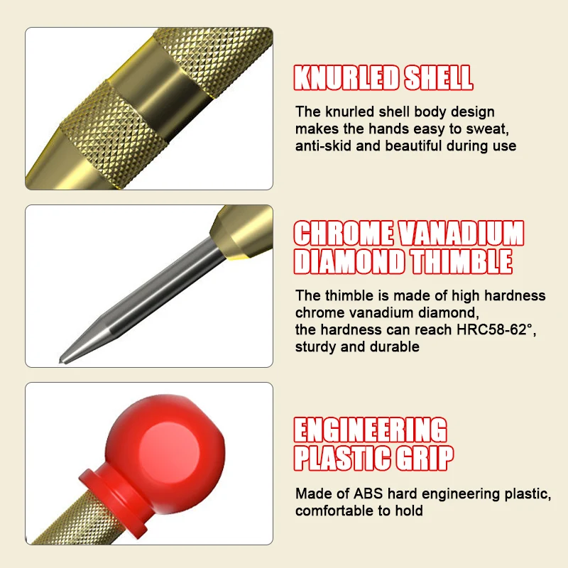 -Хорошее качество: изготовлено из высокоуглеродистой стали, прочная и высокая твердость, автоматический центральный перфоратор-это инструмент с конической точкой, который используется, делая углубление в предмете;